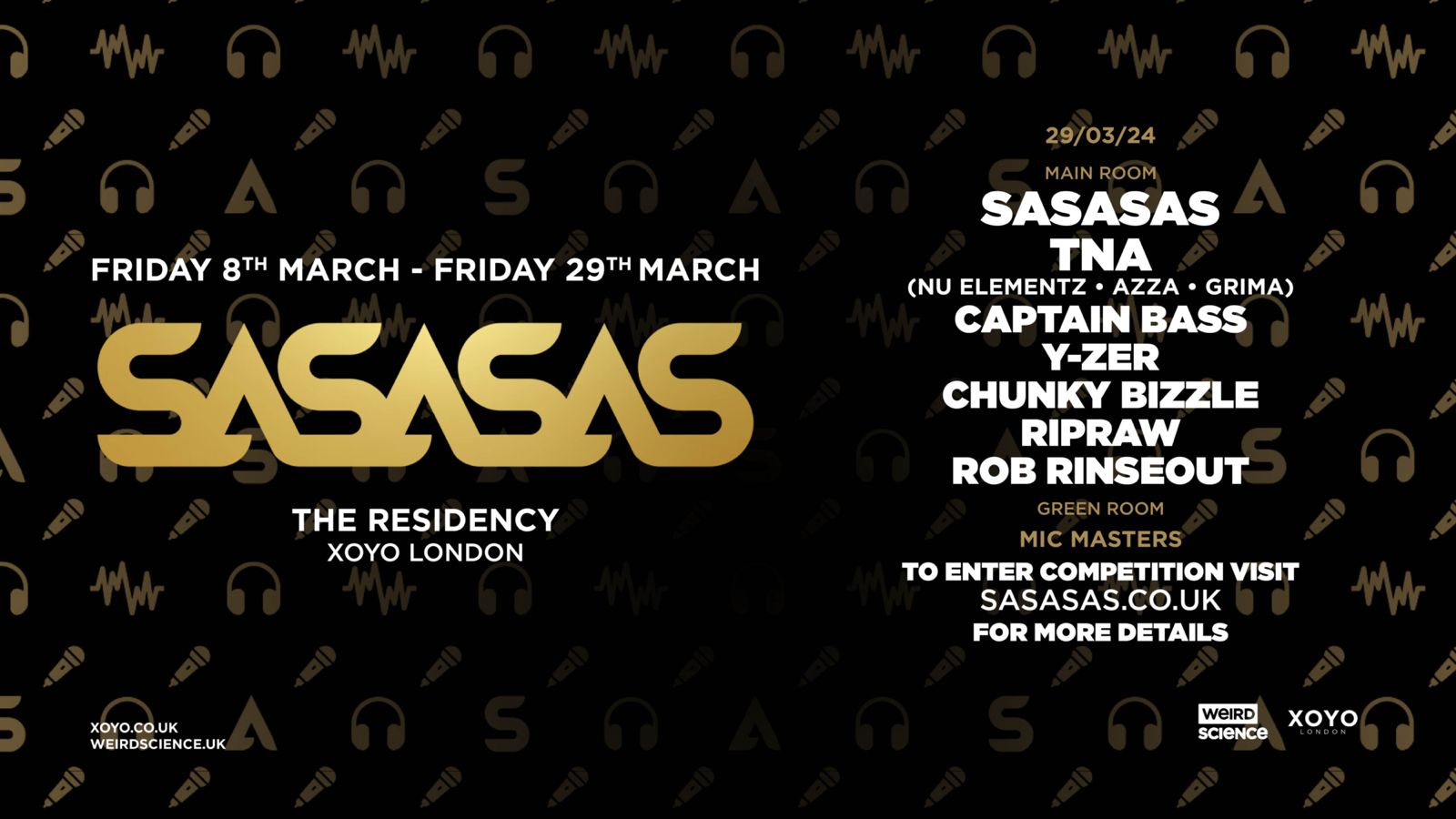 "We’re really buzzing that SASASAS will be joining the long list of amazing artists to have held a residency at XOYO London. This March, we have curated four events covering a wide spectrum of Drum & Bass, Jungle and Rave, digging deep into our musical DNA, and representing the best of scene, past and present. Come join us and a long list of some of the finest DJs and MCs for what is destined to be a really special month." - SASASAS