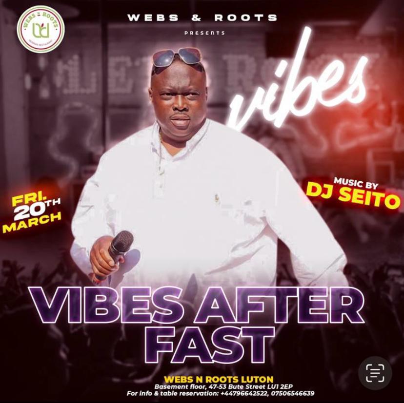 Join us for a night of good music and good vibes after the fasting season. Enjoy the best of Afrobeat, Amapiano, Afropop and throwbacks all played by DJ Seito.