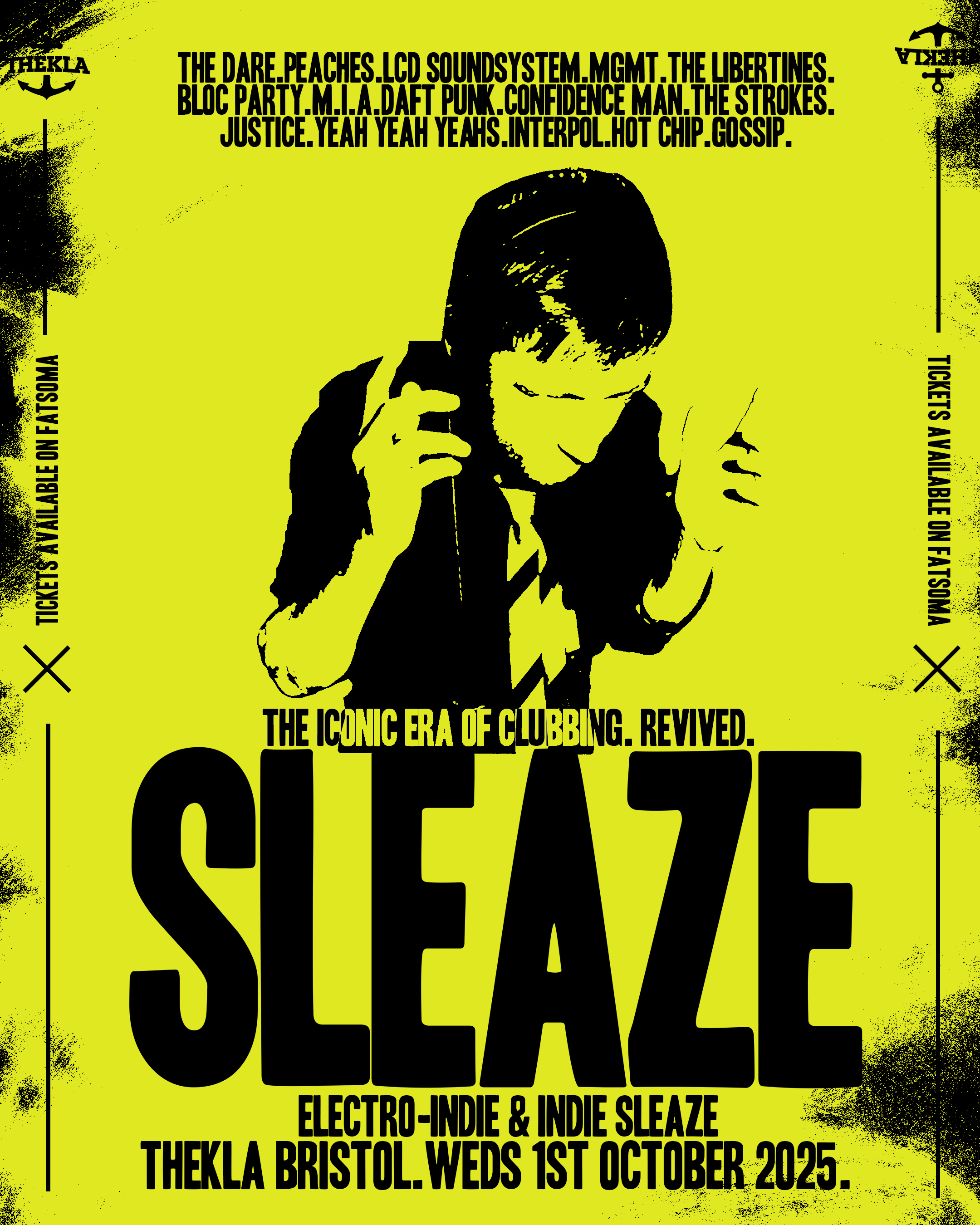 Following a string of sell-out events, SLEAZE returns to Thekla this October, delving into the iconic era of club culture. We’ll be looking back to the early 2000s and the artists who are reinventing sleaze culture today, as we spin only the best in electro-indie and hyperpop, all night long.