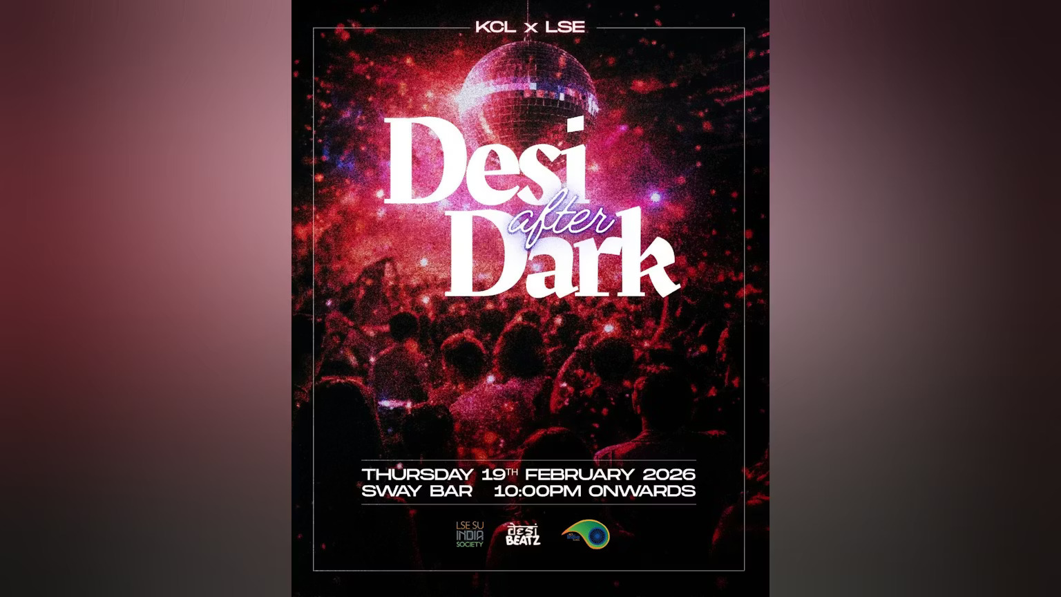 KCL India Society presents the third instalment of its very own club night : Desi After Dark- playing the best in Bollywood all night long - this is going to be an unforgettable night!