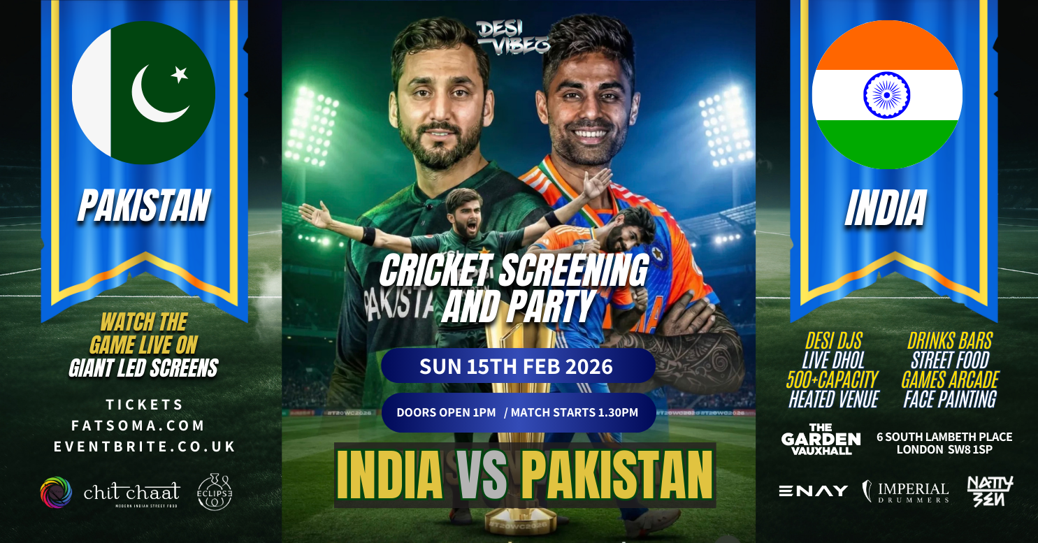 Indian and Pakistani DJs (DJ Enay and Natty Zen) playing Bollywood, Bhangra and Sporting Anthems to liven up the party vibes.