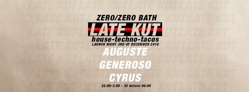 Late KUT Bath proudly presents VOL.1 The Launch night of our Monthly events - Every first Monday of each month we will present to you three Up and Coming local DJ's dropping all things house. . For our Launch night we give you: