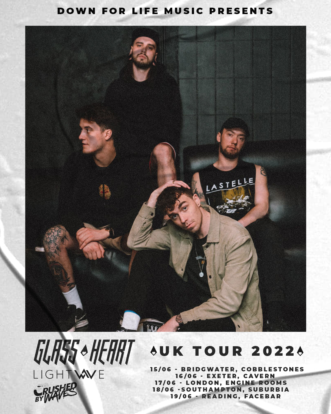 Engine Rooms and Down for life music are proud to present: Glass Heart! Performing on the London leg of their UK tour Glass heart return to The Engine Rooms with support from Lightwave and Crushed by Waves!!