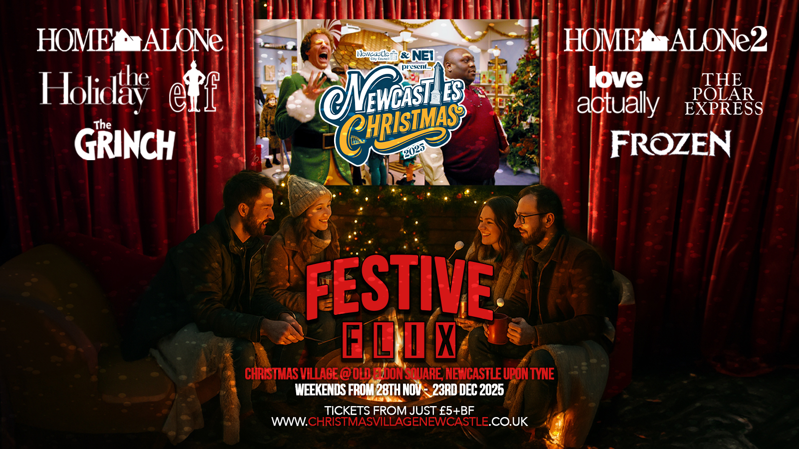 Snuggle up and step into a winter wonderland of feel-good films, festive treats, and Christmas cheer at Festive Flix, our holiday movie series at the Rockin’ Reindeer Stage, right in the heart of Newcastle.