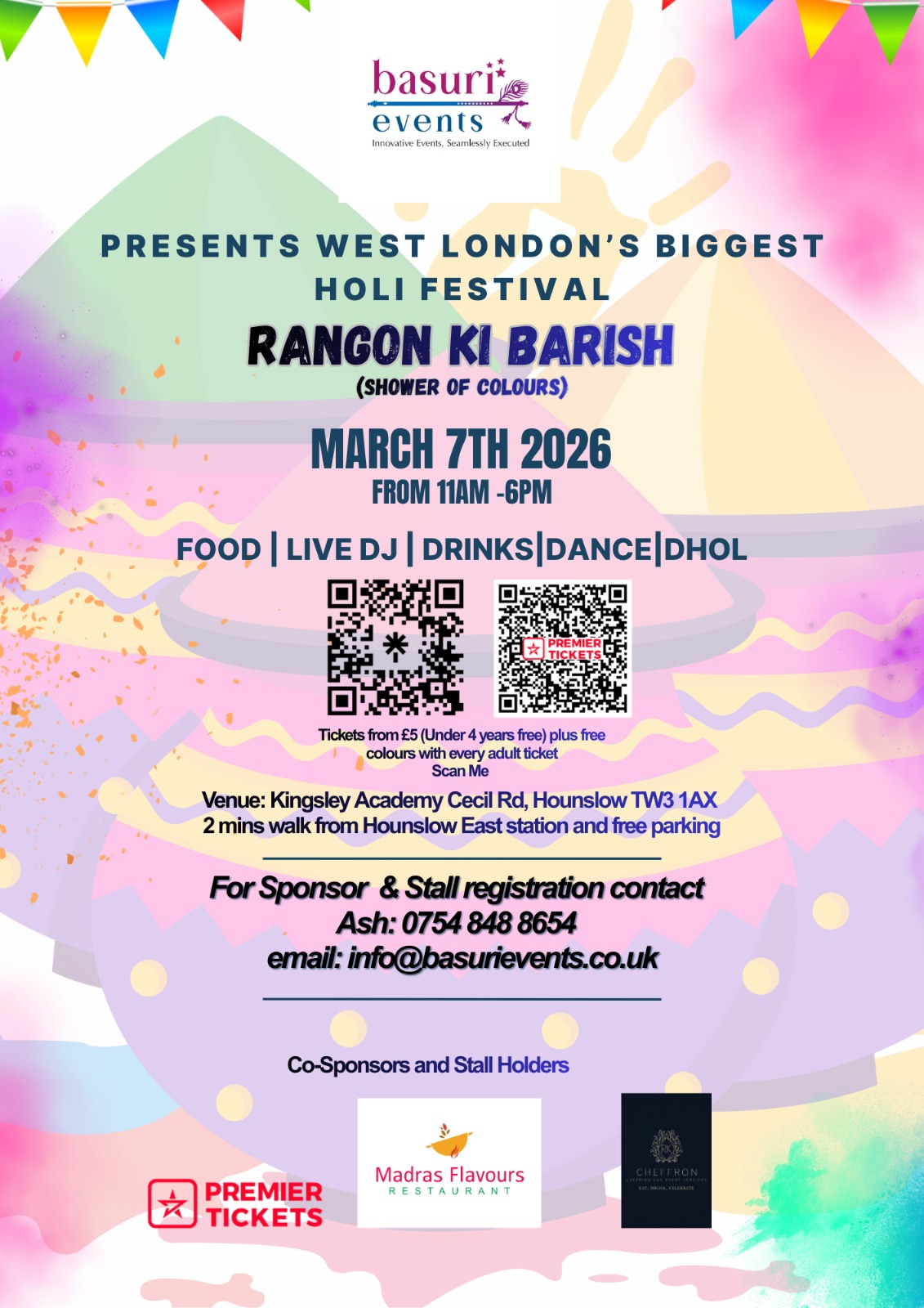 Get ready to celebrate the Festival of Colours at Kingsley Academy on 7th March 2026 from 11:00 AM (London).