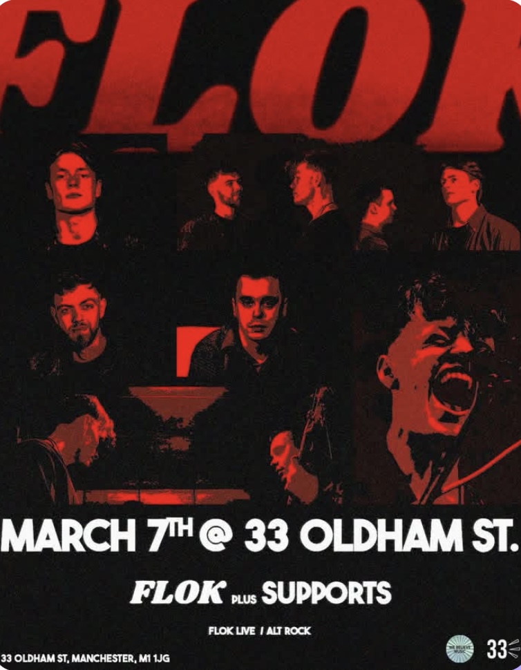 FLOK is a four piece Alternative Indie Rock band based in Manchester, who specialise in combining catchy, emotional songwriting with new wave sounds, their music aims to make you move, as well as think. They aim to continue the Manchester music tradition, while adding their own experiences to the landscape.