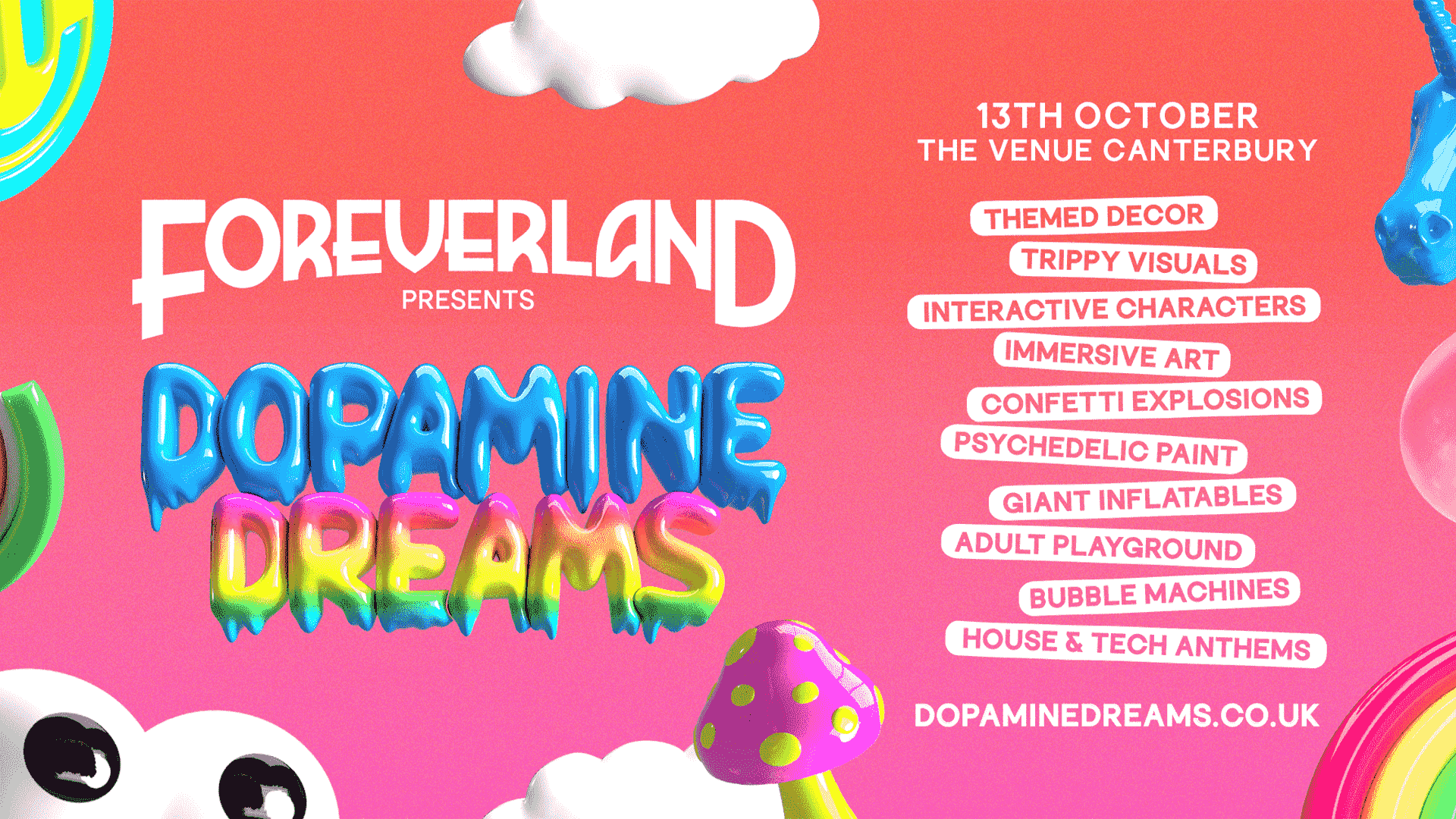 Merging psychedelic paint, giant inflatables, larger-than-life themed characters and interactive art installations; welcome to the ultimate adult playground..