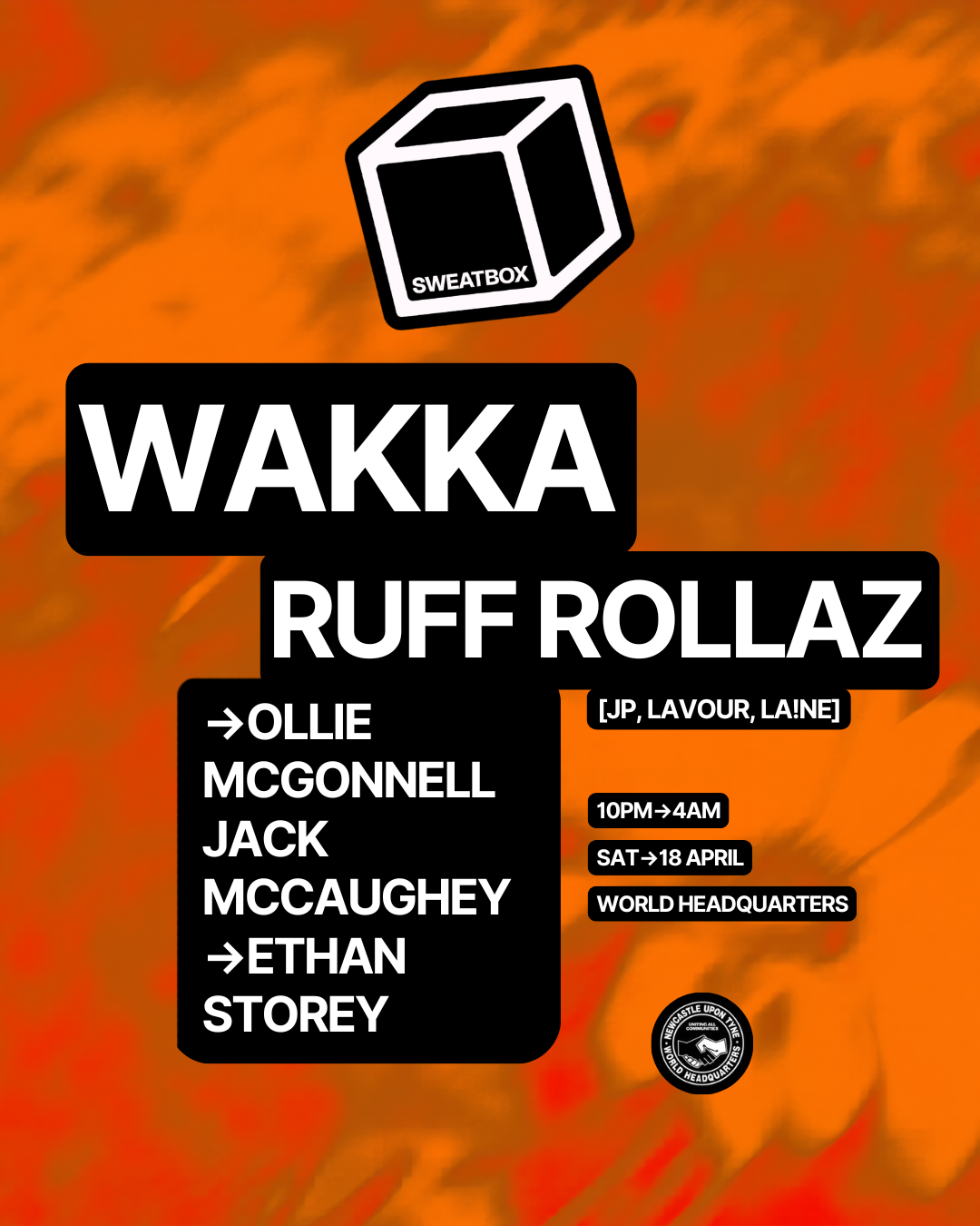 Sweatbox presents our first event at World HQ in Newcastle. Alongside our residents we invite UK Bassments Ruff Rollaz and Special Delivery boss Wakka.