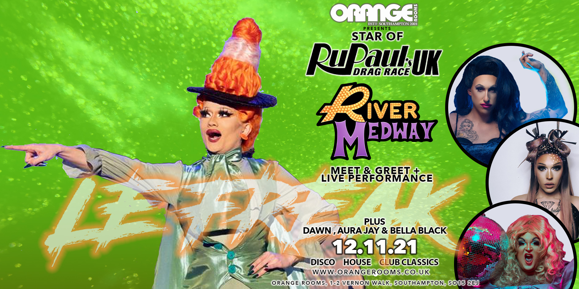 Fresh from your screens on Ru Paul's Drag Race UK season 3, River Medway will be performing LIVE at Orange Rooms on Friday 12th November 2021!