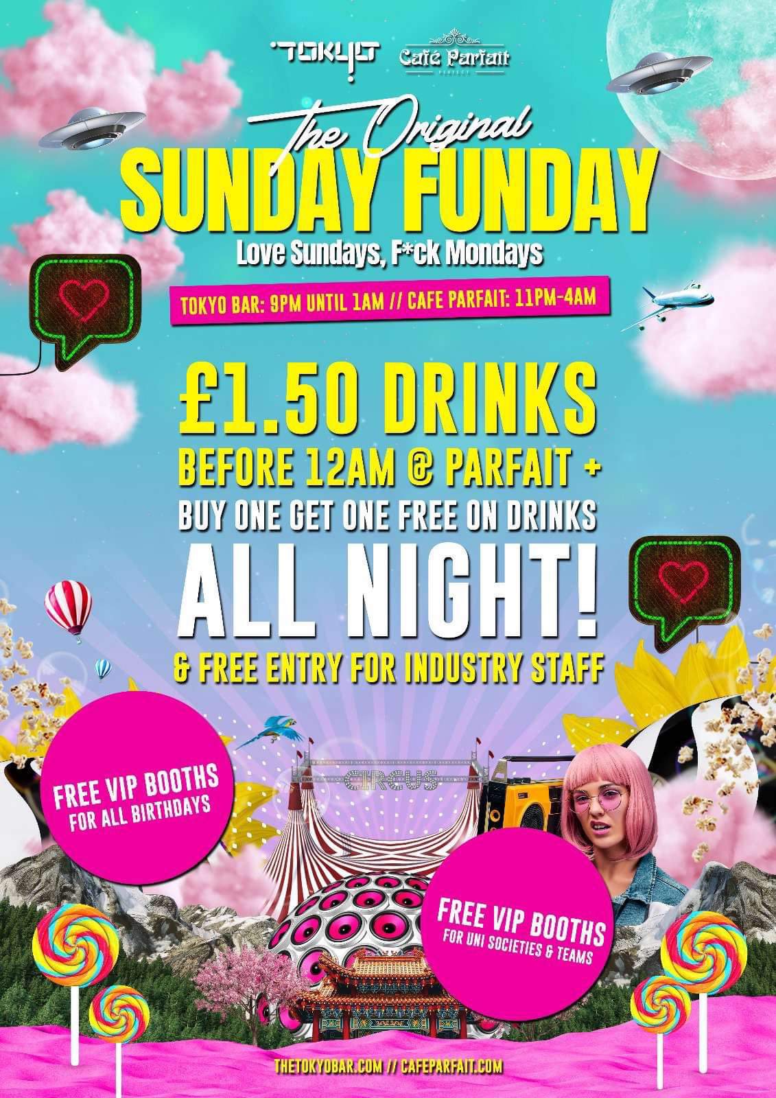 Sunday Funday- Multi Venue Party @Cafe Parfait x Tokyo