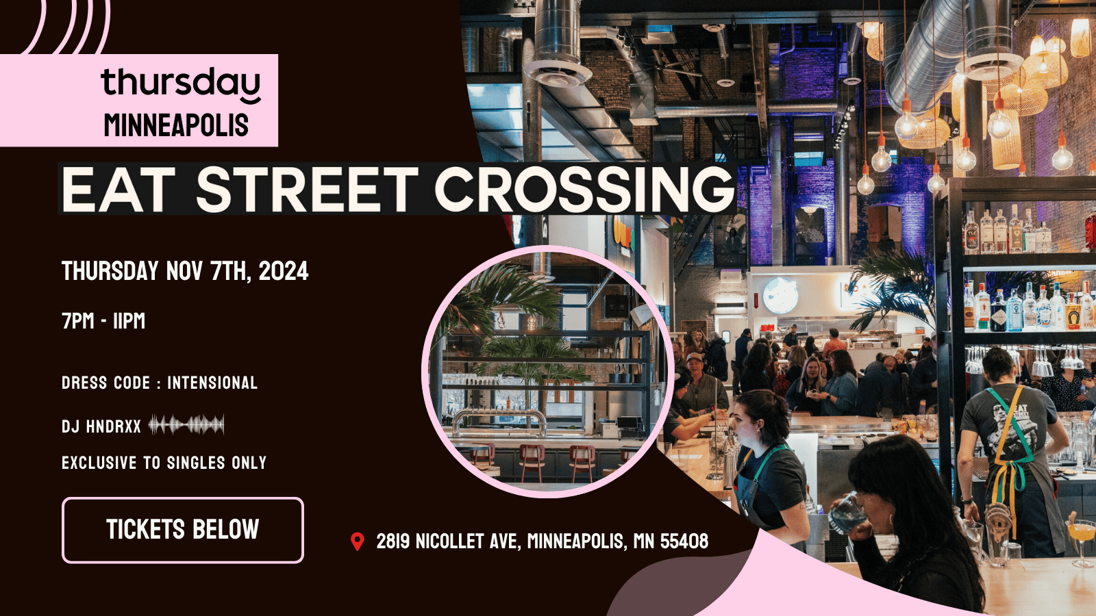 Join us for our SINGLES ONLY event at Eat Street Crossing in Minneapolis.