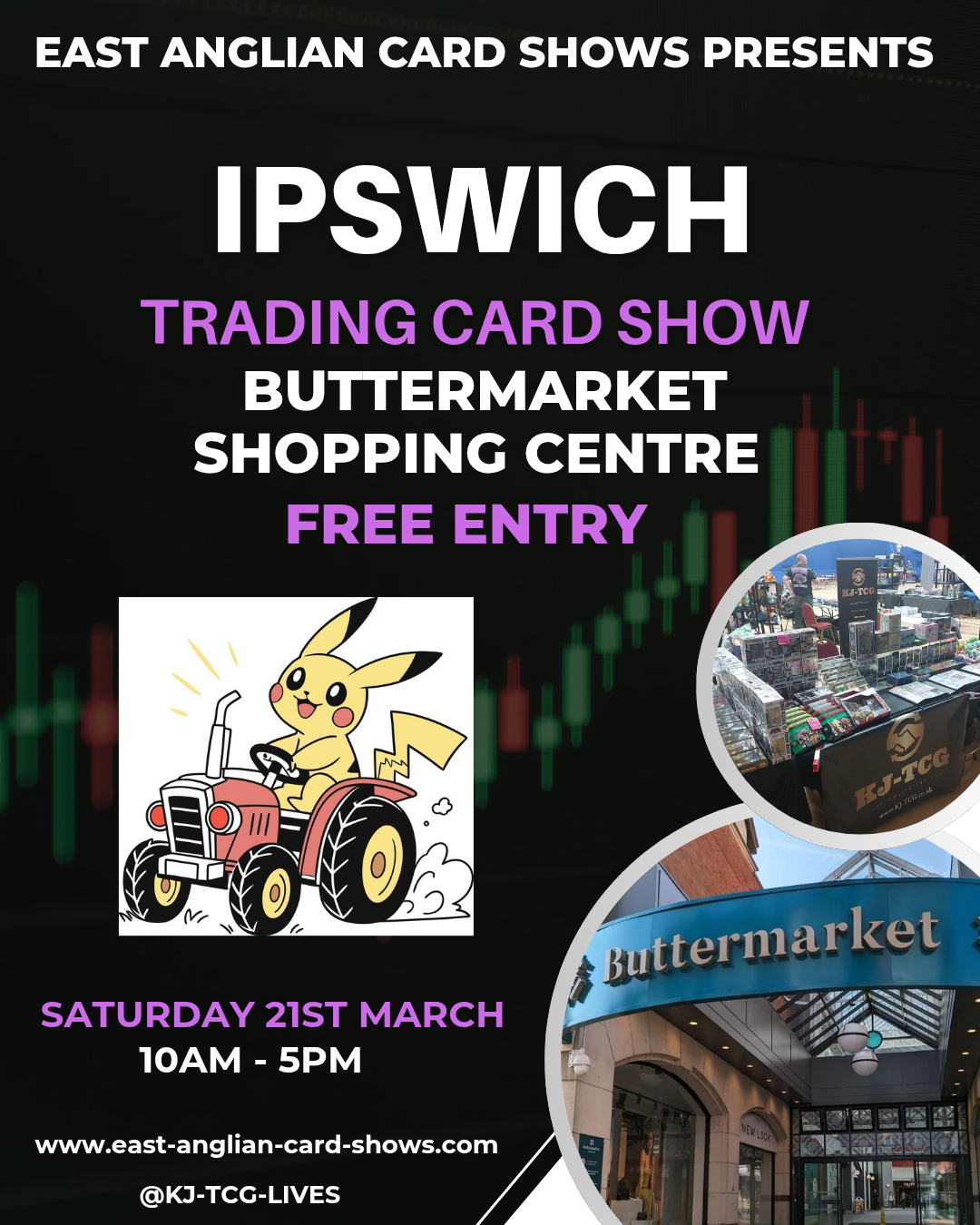 East Anglian Card Show's Brings You Ipswich Trading Card Show at BUTTTER MARKET SHOPPING CENTRE Trading Card Show with 50+ Tables of TCG & Collectibles