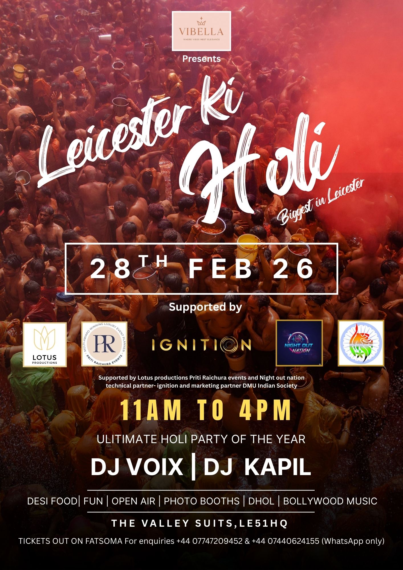 This is officially the BIGGEST Holi celebration in Leicester, proudly supported by Night out nation, Lotus Productions and Priti Raichura Events, with Ignition as our technical partner & Media partner Pukaar news and Britpunjabi