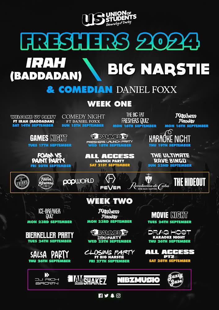 Welcome to Derby new students and welcome back to our returning students. This is the official link for your freshers wristband which gains you free entry to our entire events calendar for Freshers Fortnight!🕺🏽