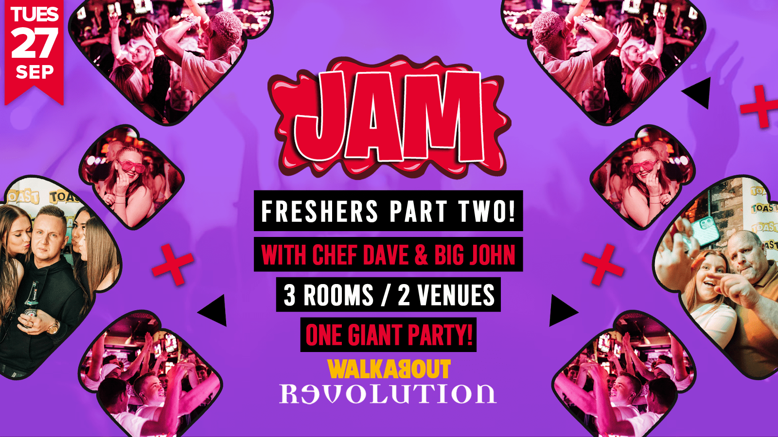 *Remember you can get your ticket for Jam at a discounted rate, join us for £1.50 drinks all night and after midnight move between both Walkabout and Revolution freely!