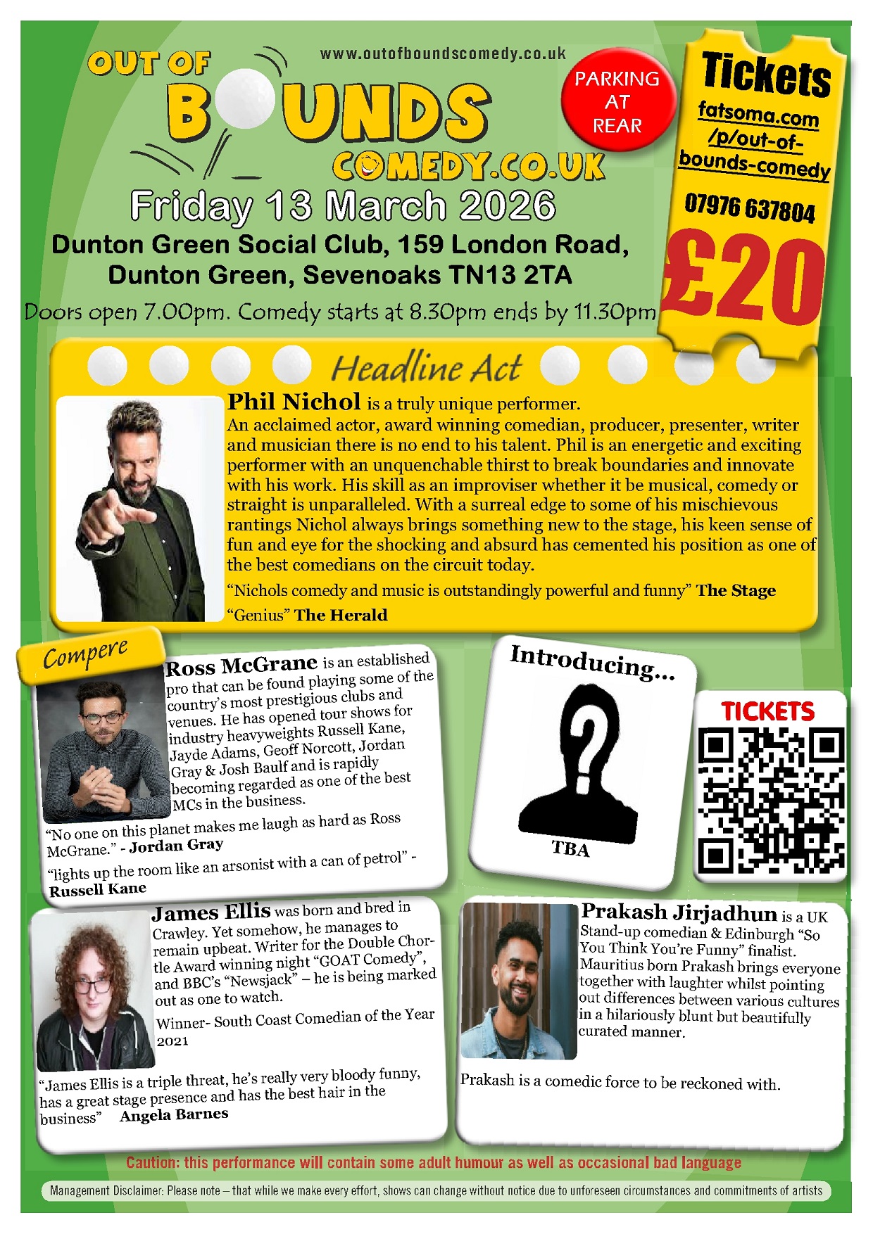 Out of Bounds Comedy Club Sevenoaks with Phil Nichol + much more