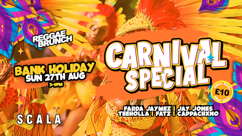Expect a serious carnival soundtrack, Carnival Caribbean jerk food served all day, Colours and waving flag, Carnival dancers roaming and Rum Punch hour.