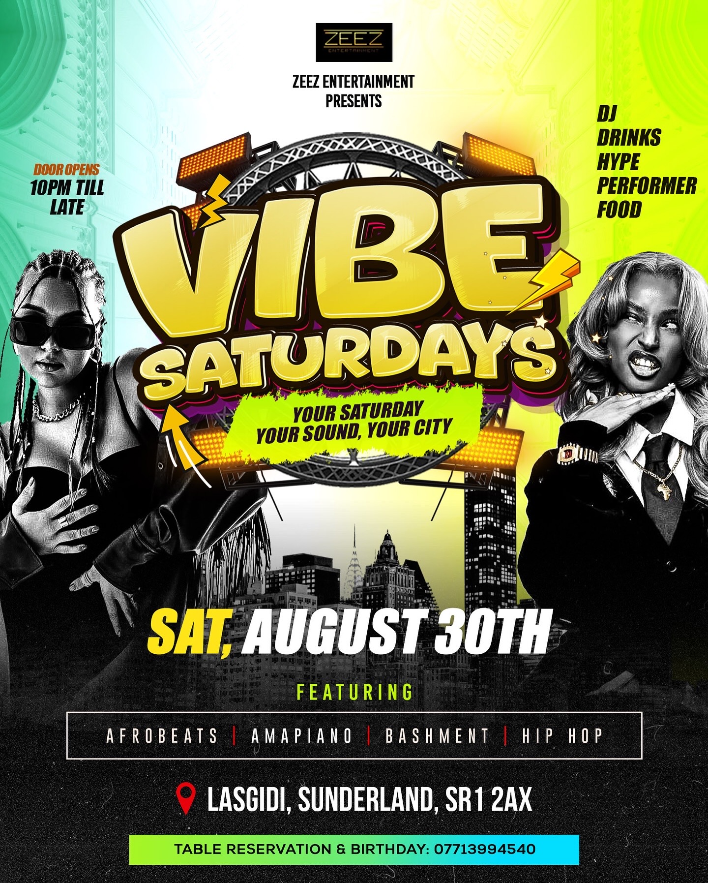 📍 Venue: LASGIDI, SUNDERLAND SR1 2AX