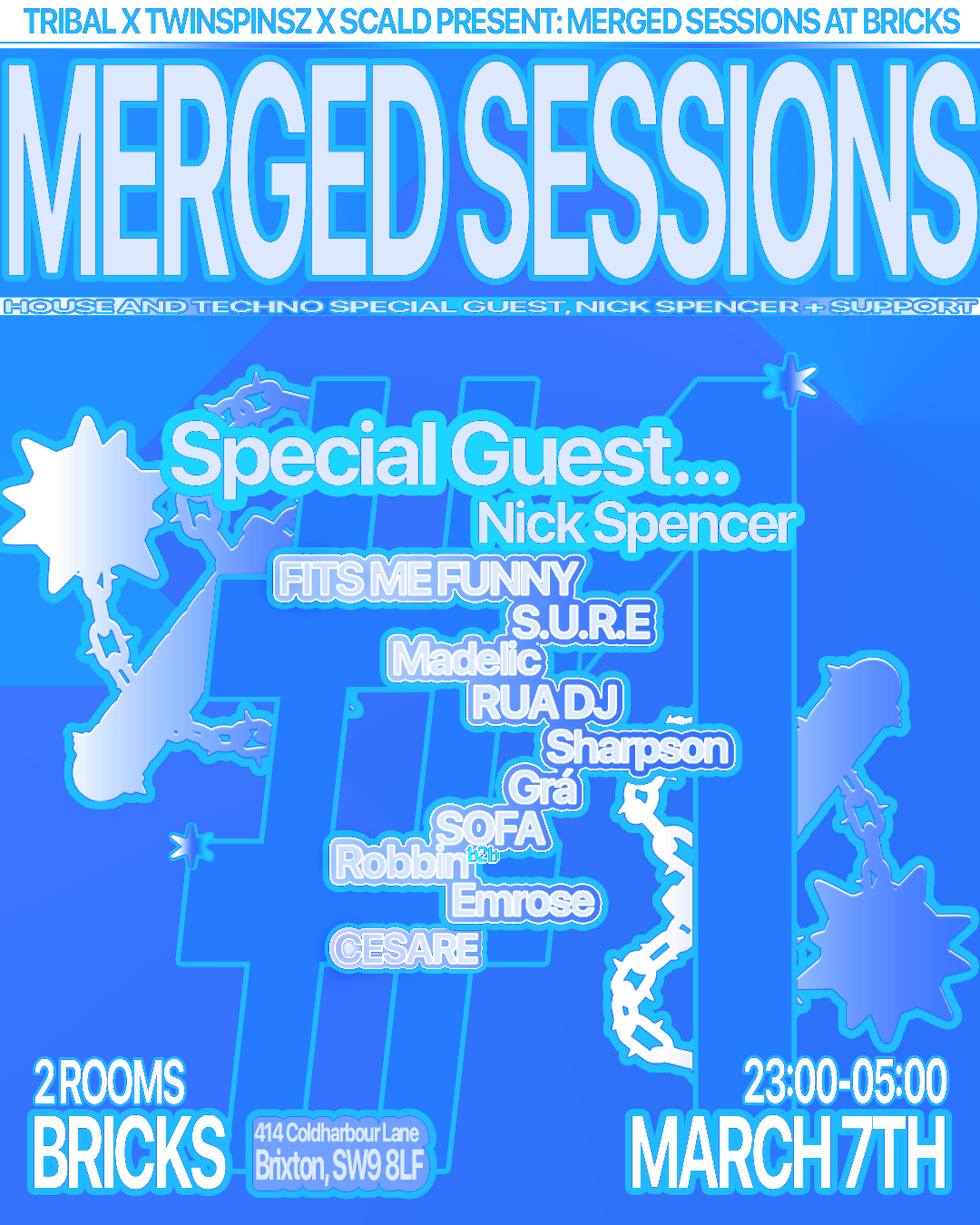 Merged Sessions exists to bring together an underground community of brands, artists, and ravers, united by sound and shared intimate space. For our first session, 3 brands come together to deliver a high-impact lineup.