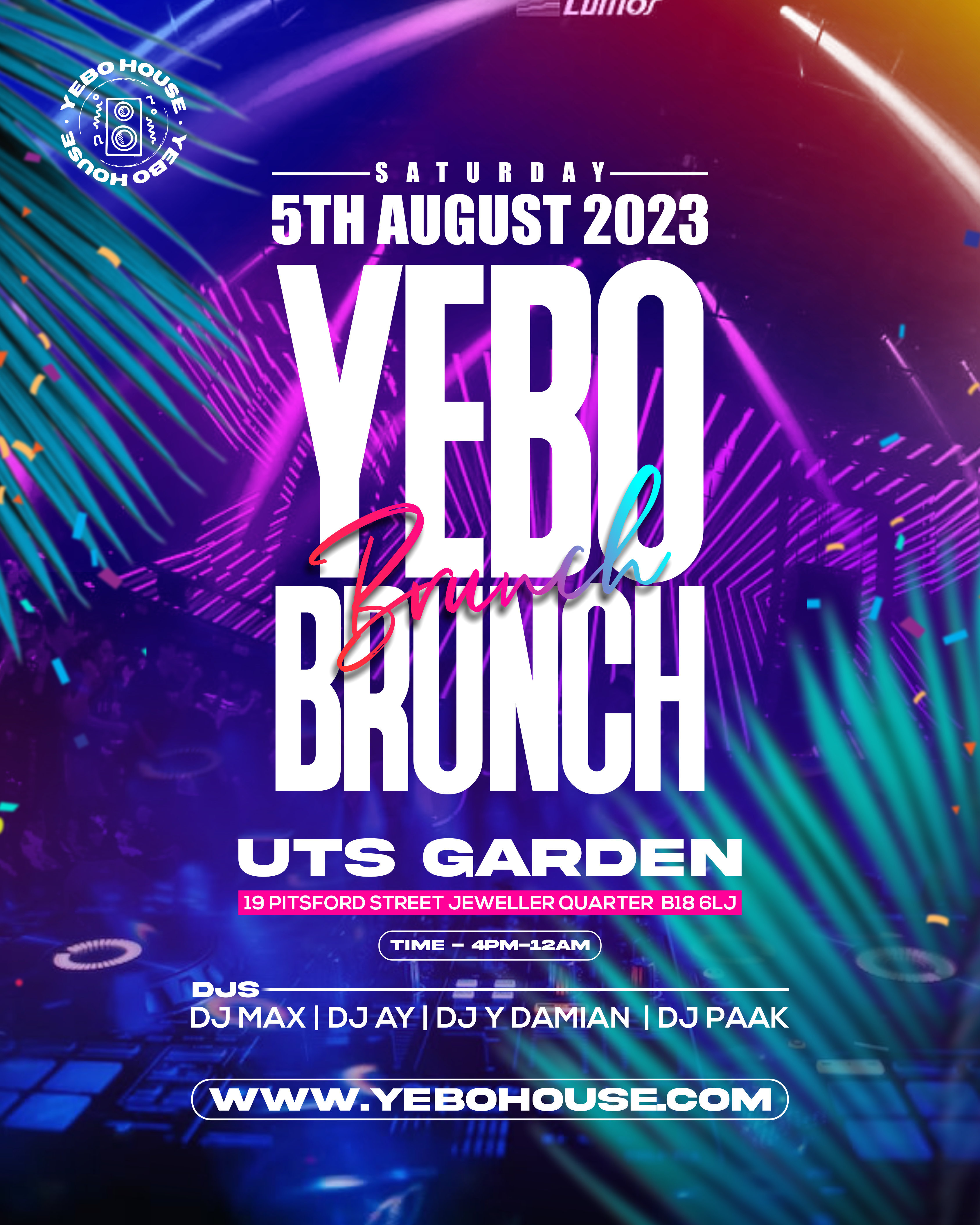 Join us for a vibrant and energetic brunch party filled with the pulsating beats of urban music. Indulge in delectable bites and refreshing beverages as you immerse yourself in the infectious rhythms of Afrobeats, Amapiano, Bashment, hip-hop, R&B, and soul. Our lively gathering celebrates the fusion of urban sounds with the culinary delights of a delightful brunch menu. Get ready to groove, connect with like-minded music enthusiasts, and experience the perfect blend of delicious food and urban vibes in an unforgettable daytime celebration.