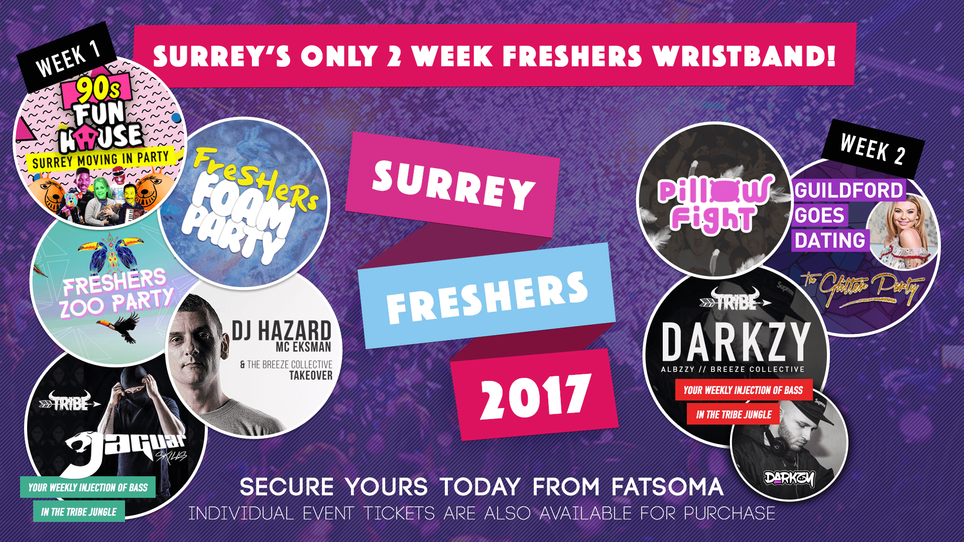 Lineup subject to change. This event has no affiliation with the University Of Surrey Student's Union. Surrey Student Nights host an alternate Freshers Week that spans 2 weeks!