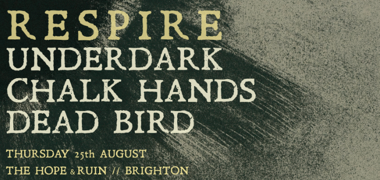 Respire are joined by UK post-black metal quintet Underdark, as well as local support from Chalk Hands (Dog Knights - screamo/post-rock) and Dead Bird (TTNG drummer's new screamo/post-hardcore project).
