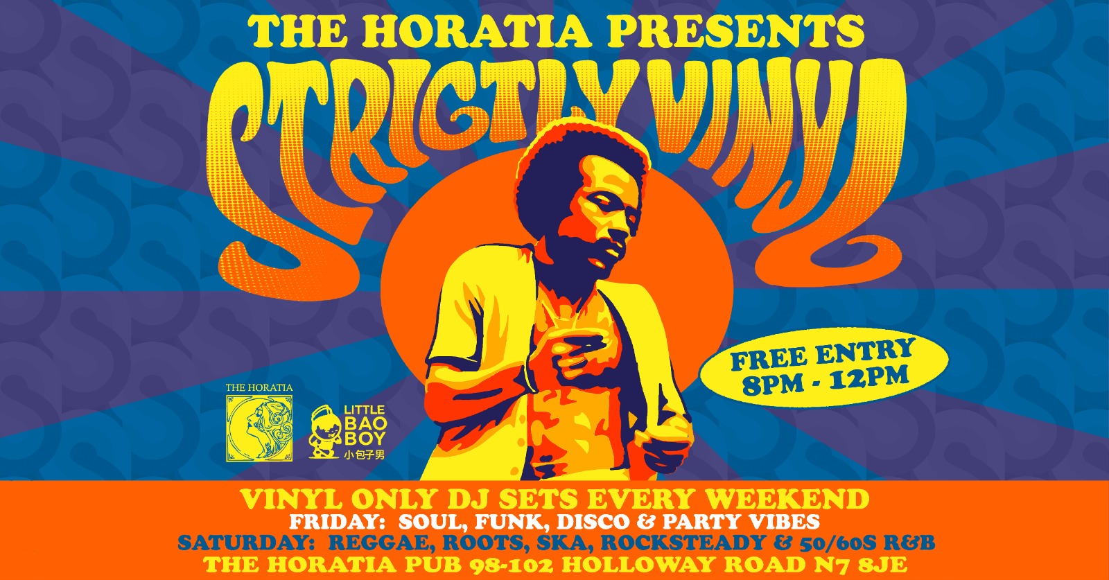 residents Itchysoul (MBR) and special guests playing vinyl selections of sweet, infused Soul, Funk, Disco, Reggae, party classics & downtempo delights and beyond to start the weekend with the perfect party soundtrack at the Horatia N7, Highbury & Islington’s proper pub.