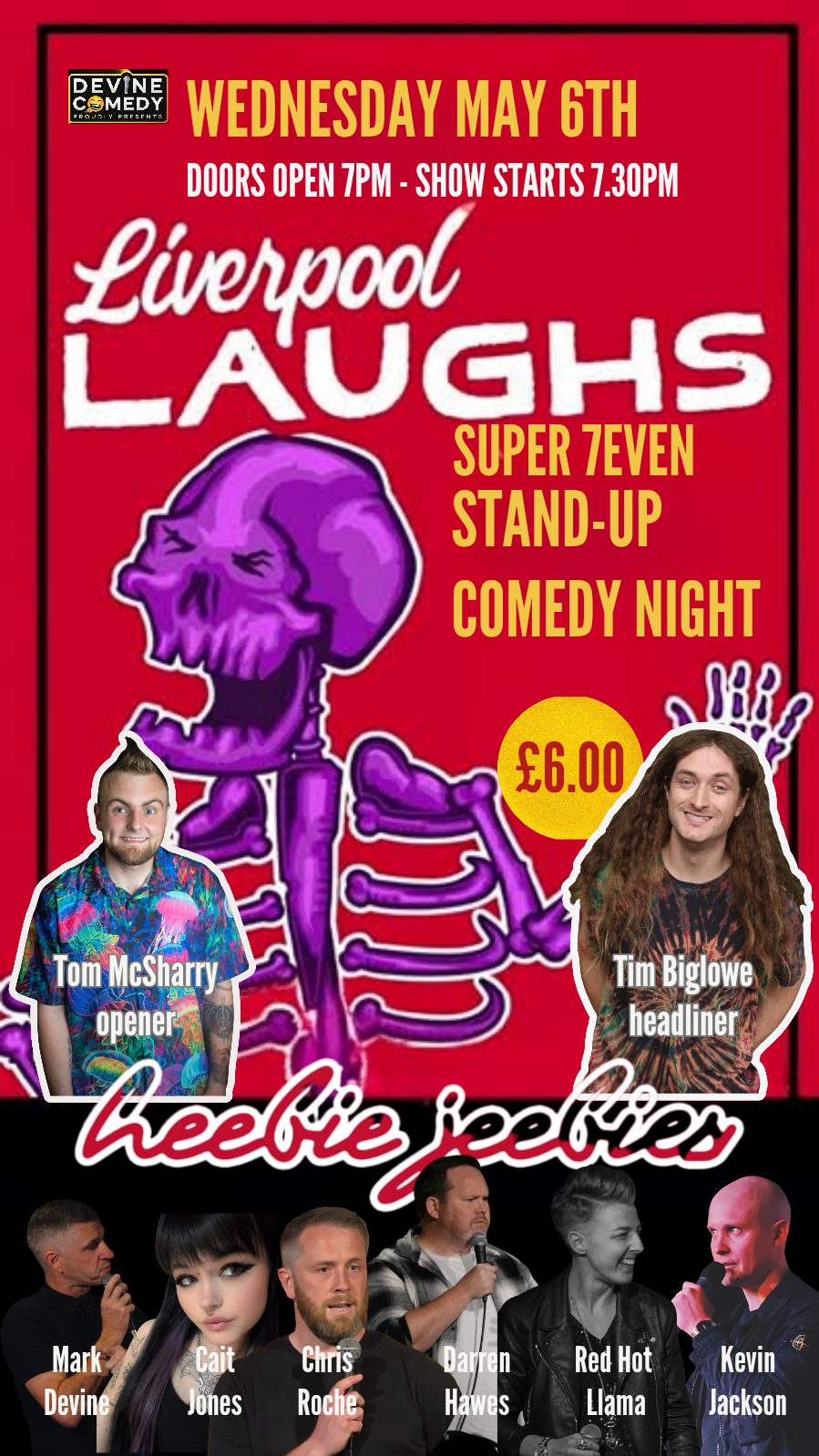 Seven comics for iust £6 to for our monthly stand-up comedy show!!