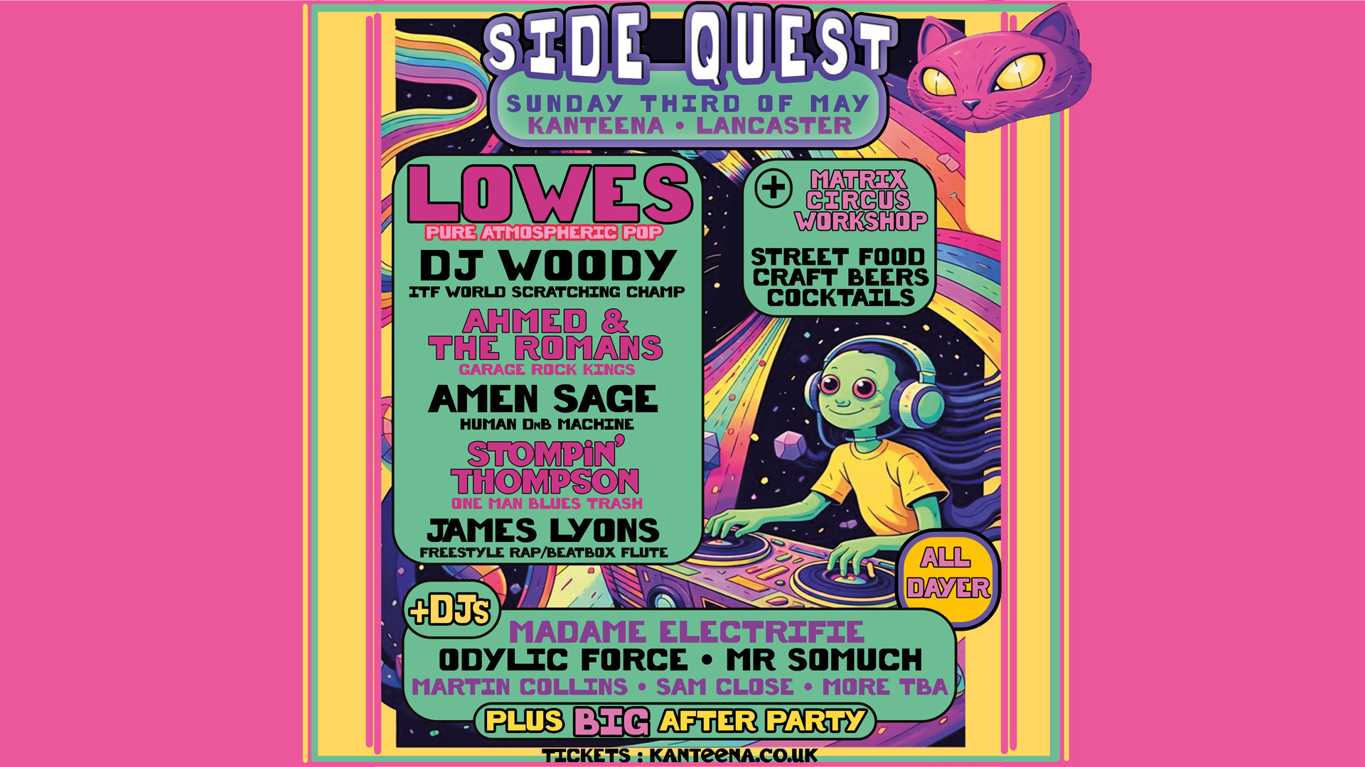Side Quest…… An all dayer taking on some of the sexiest acts in the land, over to Lancaster for a day of absolute tunes, chaos, street food & good times!!