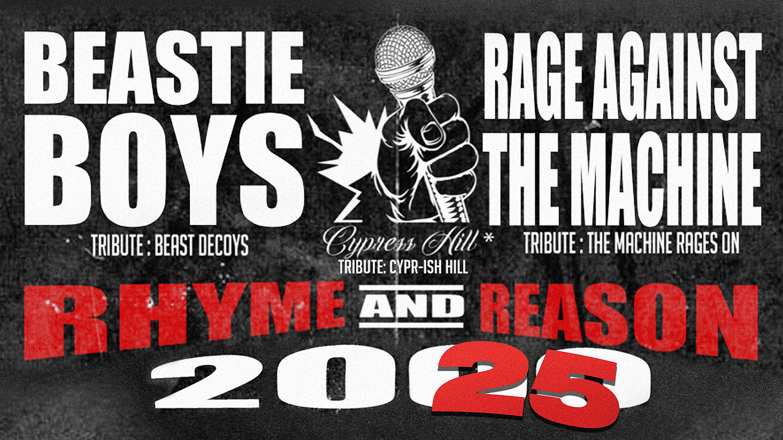Join us for an unforgettable night as we pay tribute to three iconic bands that shaped the music scene: ✌🏽Beastie Boys – Feel the energy of hip-hop legends! (Beast Decoys) ✌🏽Rage Against The Machine – Experience the powerful riffs and revolutionary spirit! (The Machine Rages On) ✌🏽Cypress Hill – Get ready for a night of classic beats and lyrical mastery! (Cypr-ish Hill)