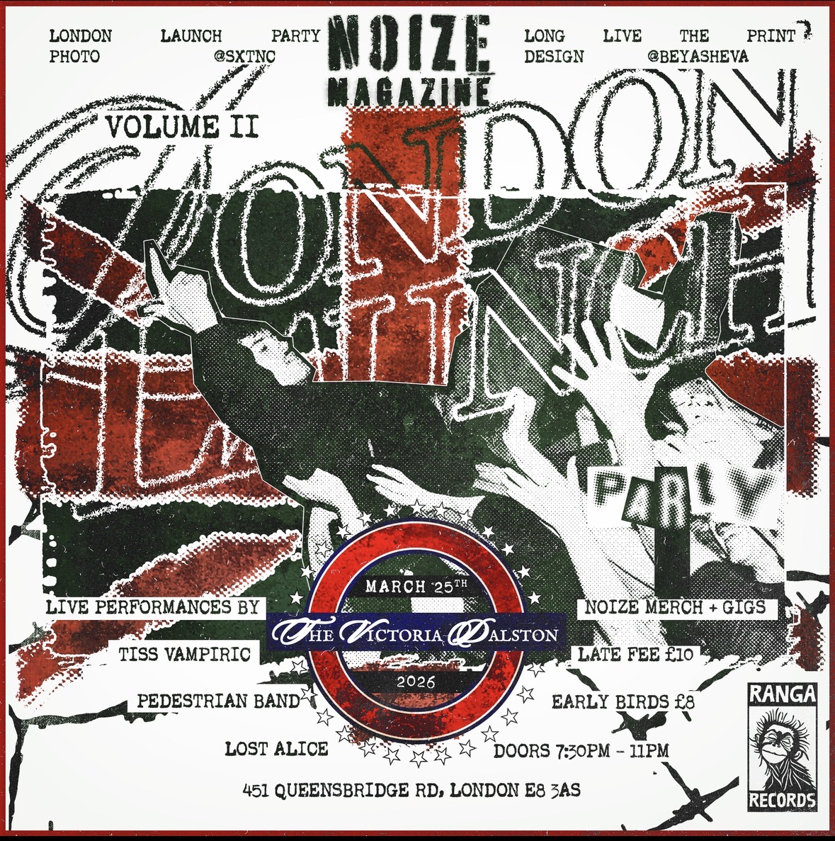 Come celebrate the launch of NOIZE Magazine’s second print issue in London. After their sold out festival in Paris, NOIZE is bringing the best of the underground. This sonically diverse line-up consists of the femme fatale pop-rock group Lost Alice, the post punk group with a twist, Pedestrian Band, and the hauntingly melodic Tiss Vampiric; and all for only £8 (£10 at the door) Buy now before they sell out!