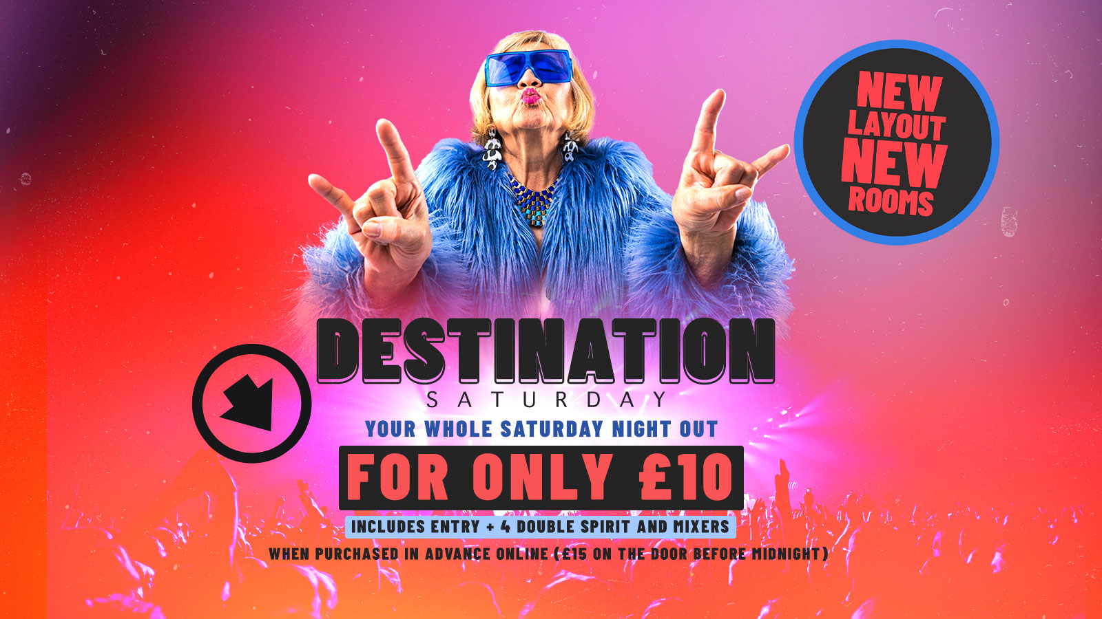 £10 DESTINATION Wristband - Your whole night out for £10 - includes Entry before 12am and 4 x Double spirit and Mixer - LAST ENTRY 12am