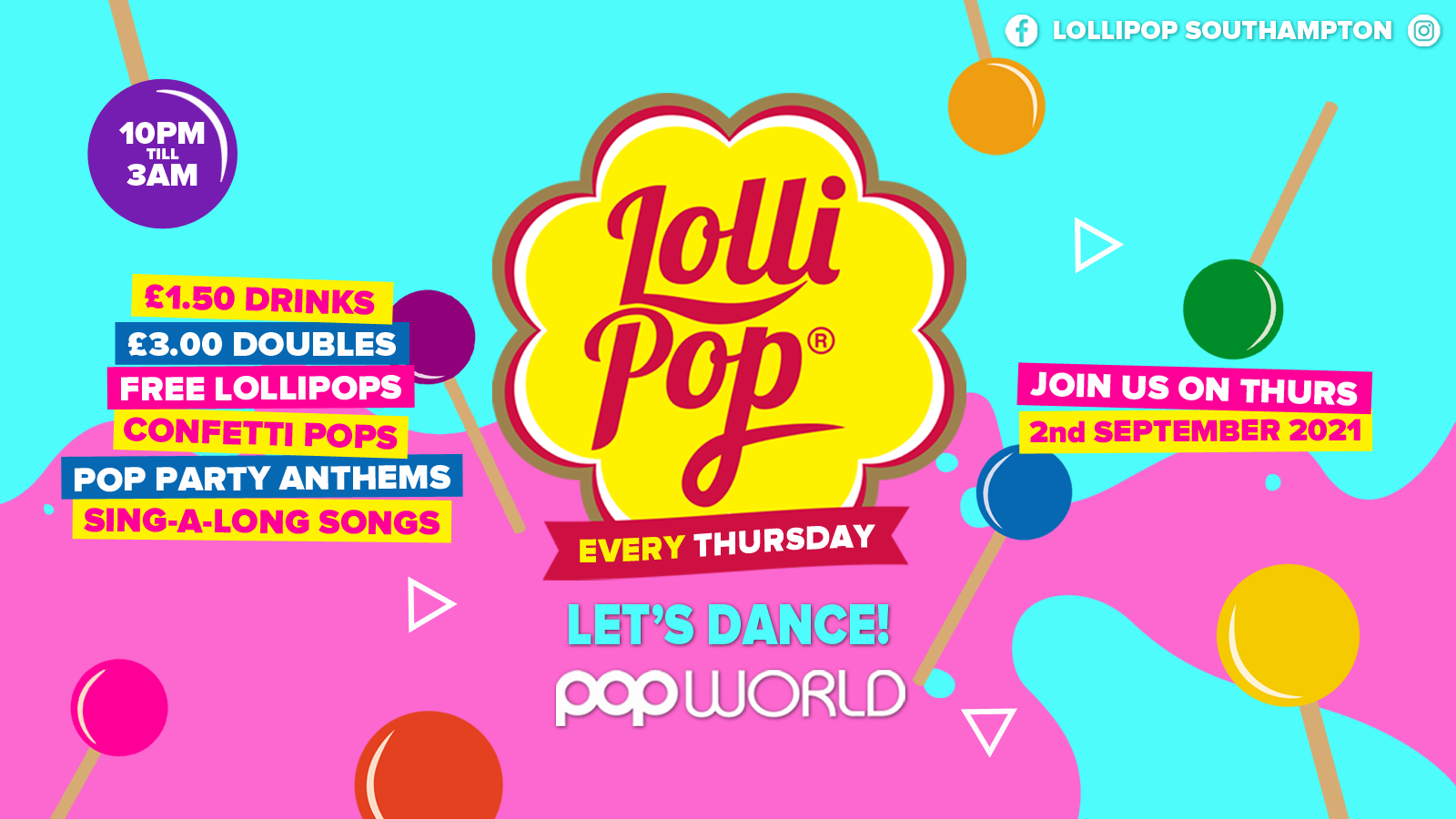 We will be taking over Popworld every Thursday night with £1.50 drinks, £3.00 doubles, pop anthems, sing-a-longs, the BIGGEST themes/entertainment and of course FREE Lollipops every week!
