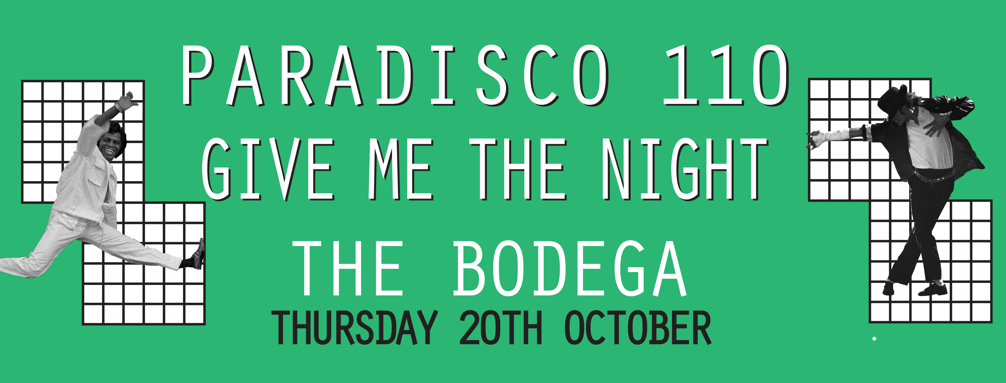 PARADISCO gets straight back into it's fortnightly series at The Bodega! Armed the best of Disco, Funk and Hip Hop to keep us dancing 'til early morning. Join us drinkin' all the rum with our new drinks deals, including havana club, old j and the capt'n!