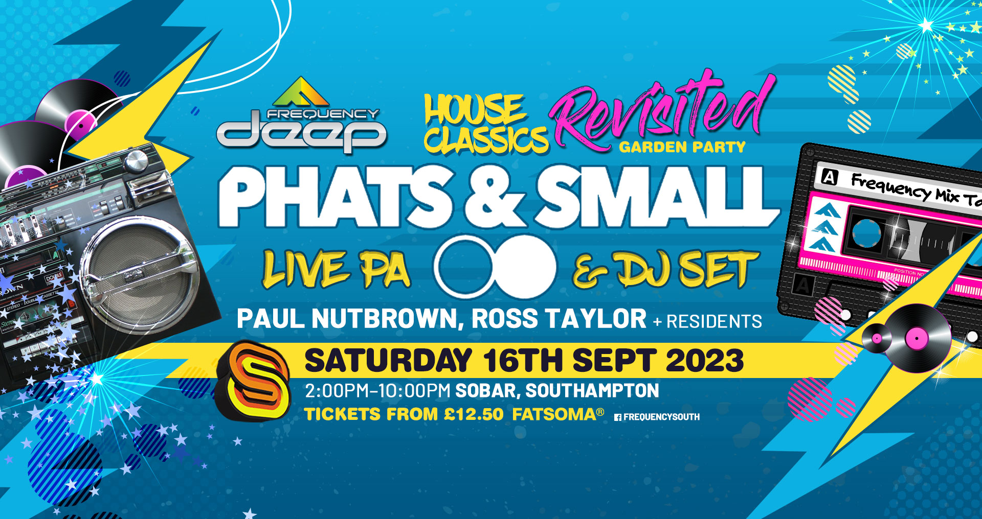 Join us on Saturday 16th September as Frequency takes you back in time with Phats and Small for our ultimate garden party of the summer! Get ready for a night full of retro beats and classic house hits. See you there! #FrequencyGardenParty #PhatsandSmall #RetroVibes