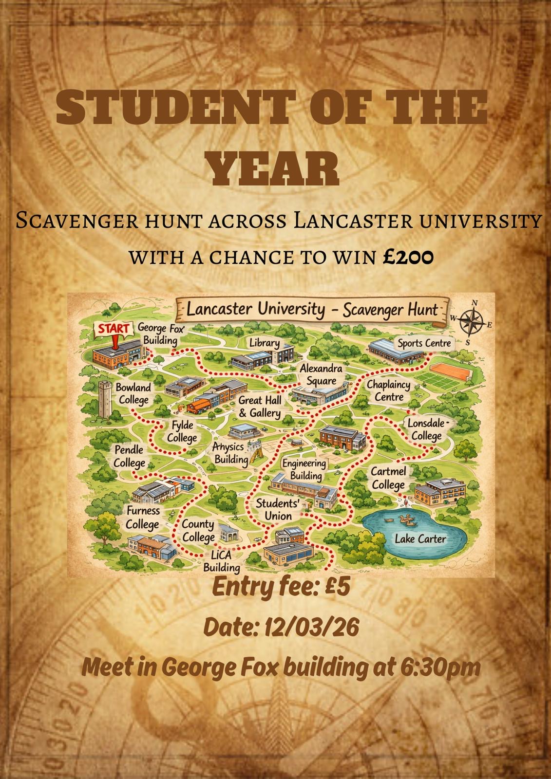 Join us for a campus wide scavenger hunt with a £200 prize up for grabs! 💰