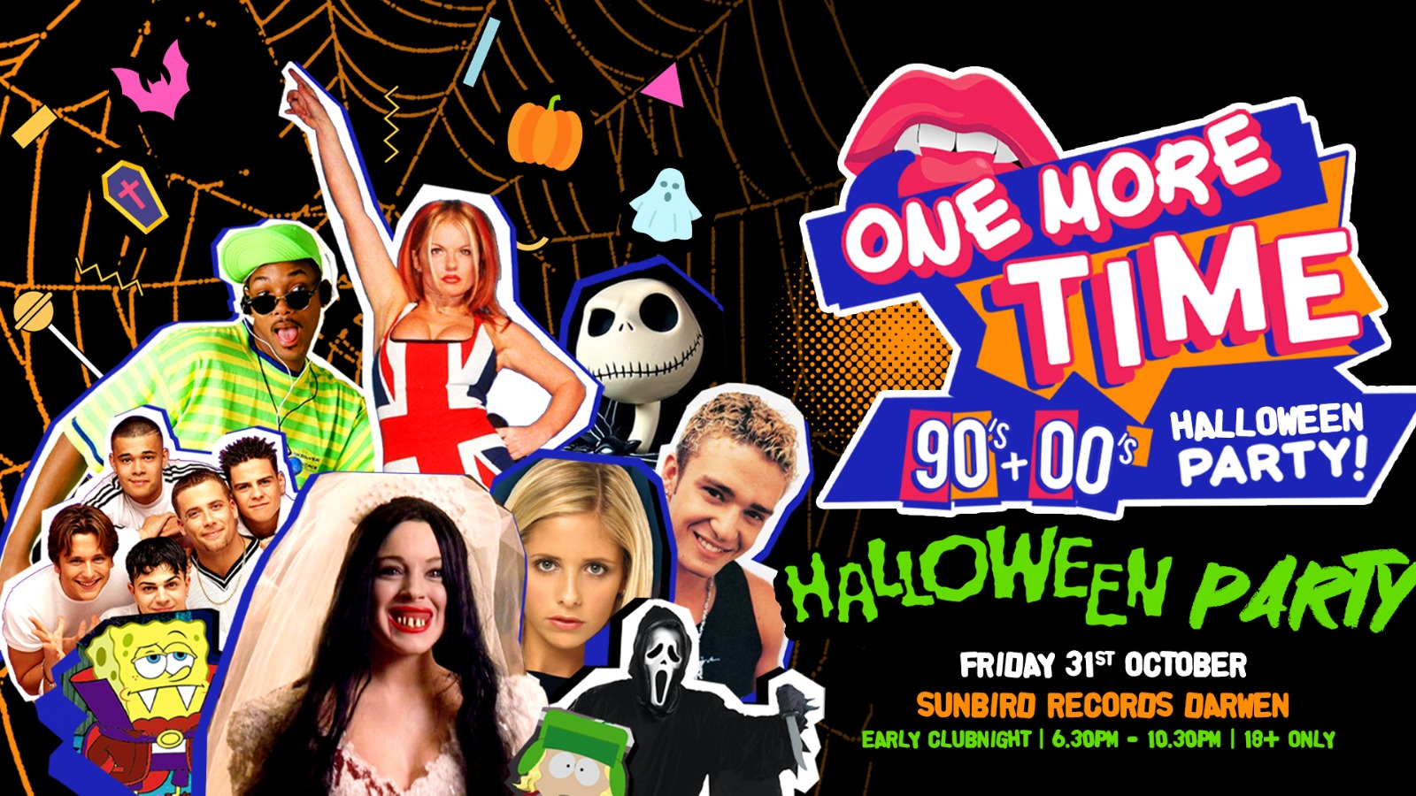 One More Time 90s & 00s Halloween Party at Sunbird Records Darwen! Early club night from 6.30pm - 10.30pm! Home by midnight!Throwing it back with all the biggest 90s & 00s pop classics, r'n'b jams, dance anthems and hip hop bangers for Halloween! Fancy dress welcome!