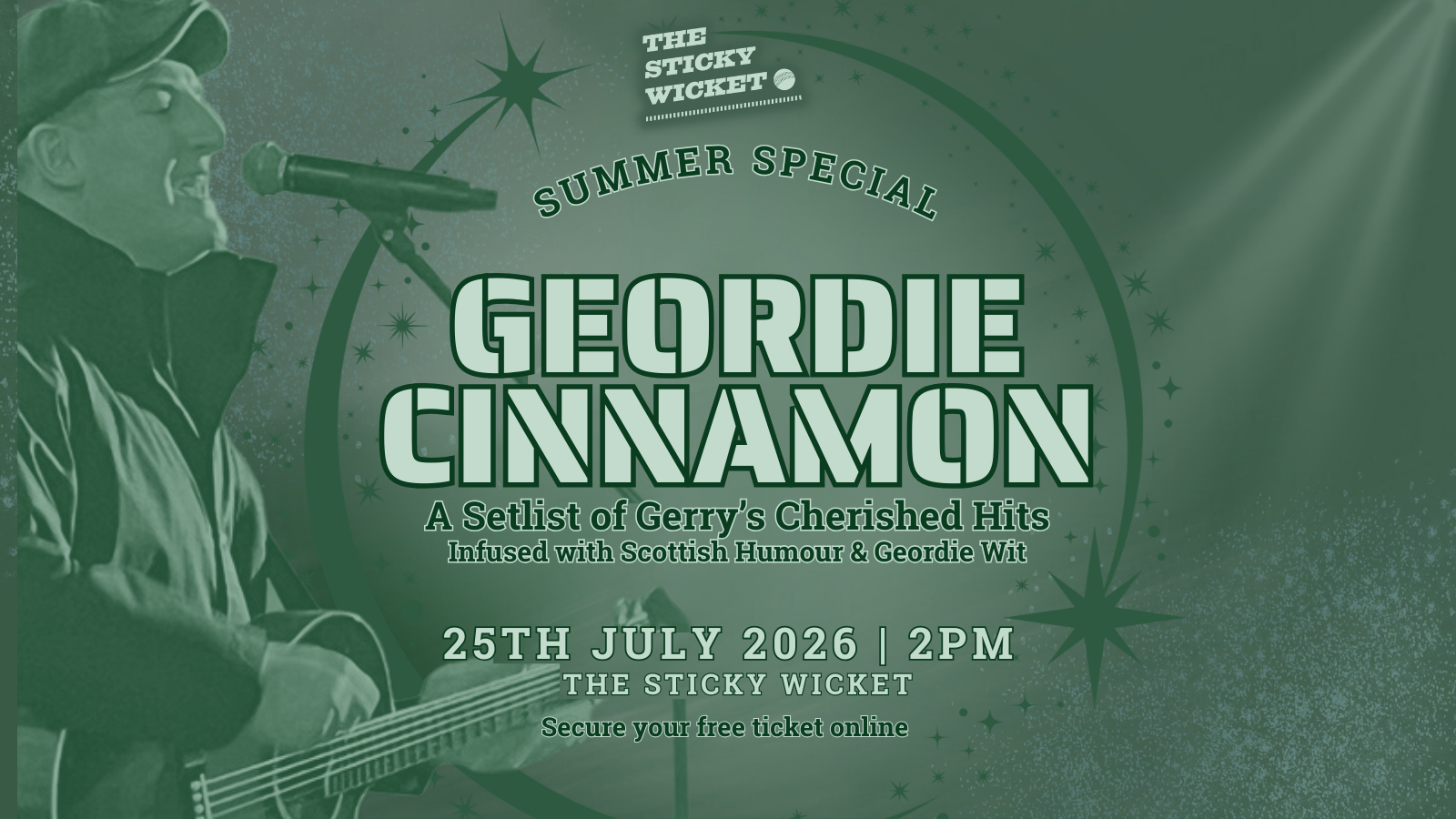 Performing it’s GEORDIE CINNAMON – a Belter of a night packed with Gerry’s biggest tunes, a Canter through the classics, and plenty of Scottish humour mixed with Geordie wit.