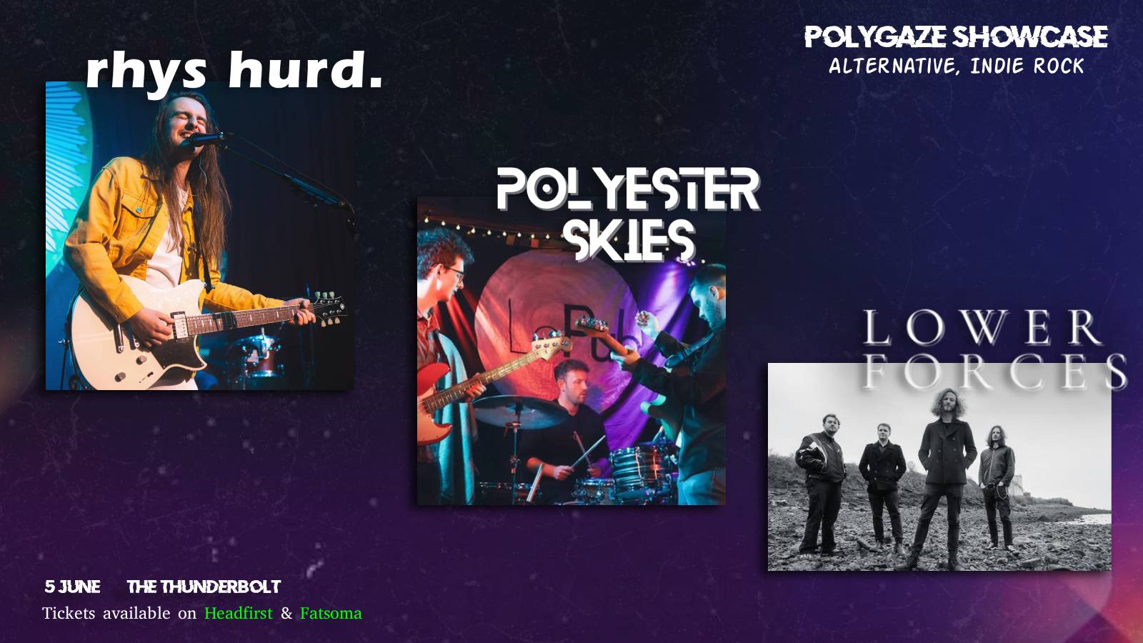 A grassroots gig at The Thunderbolt, Bristol, hosted by POLYGAZE. Join us on Friday 5th June for an evening of indie rock with music from the likes of