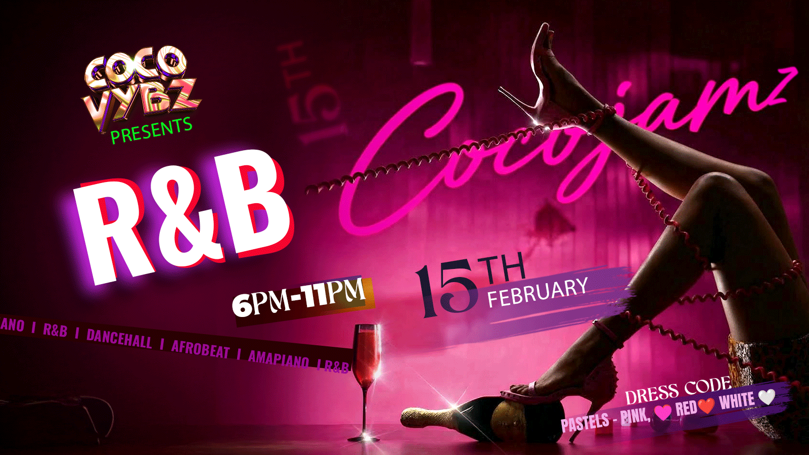 A smooth R&B experience with Cocovybz energy — slow jamz, coco jamz, real vibes, and good people only.