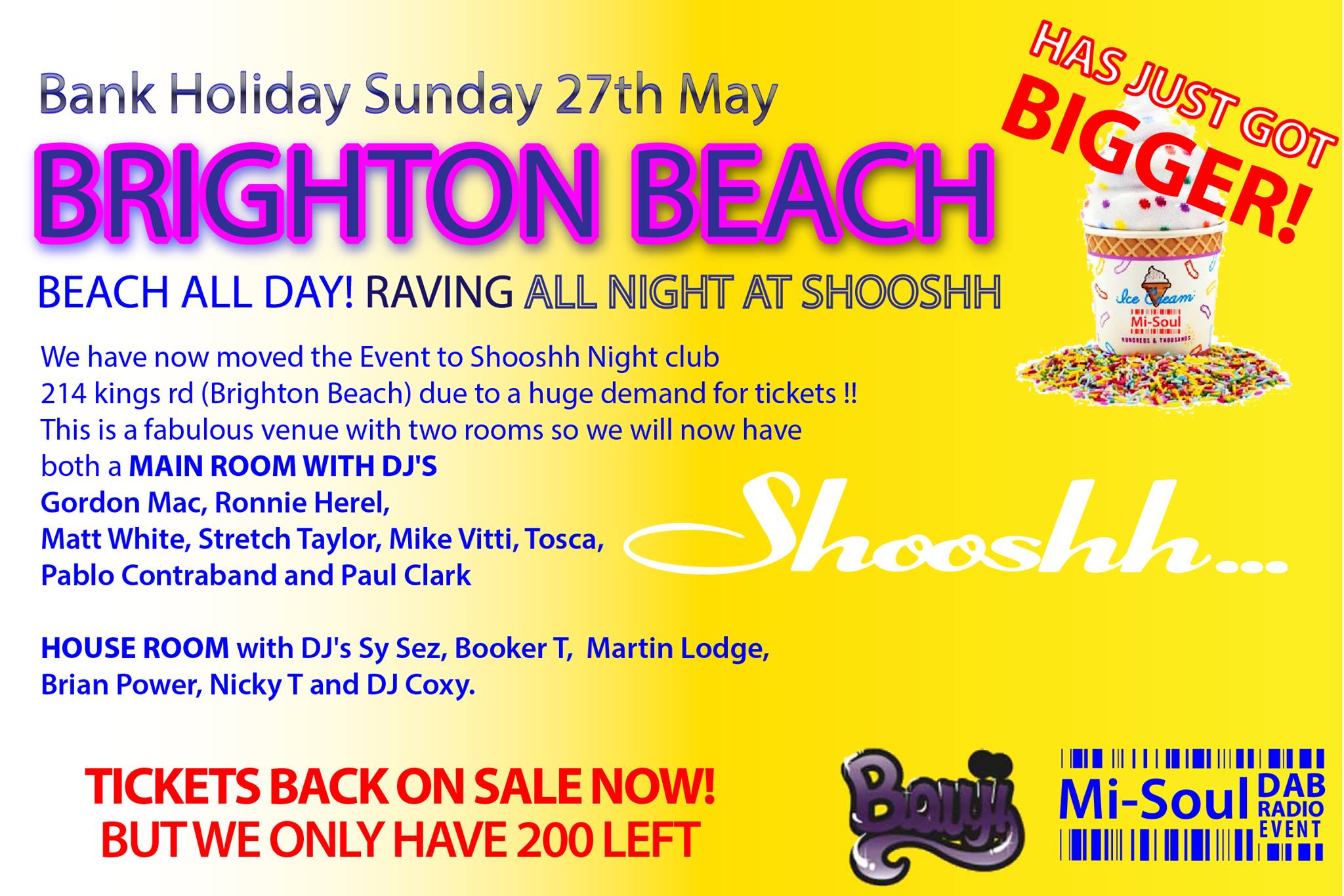 Music heads and dancing people save the date! Sunday 27th May 2018, Mi-Soul Radio will be taking a road trip to Brighton for their opening party.Due to overwhelming demand we have had to find a bigger venue and NOW we are going to be at Shooshh Brighton from 1pm in the afternoon where we will hold the outside part of the event and then move inside from 8pm til 4am and later if you have the energy......Because we have a bigger venue with 2 rooms, we now have a House room with a Great line up.SY SEZBooker TMartin LodgeBrian PowerPablo Contraband