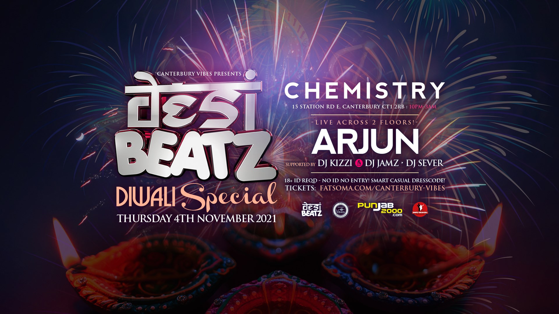 We head to Canterbury hotspot - CLUB CHEMISTRY - for a Multi Floor Takeover - bringing you one the UK's biggest Urban Desi Artists LIVE for the first time ever in Kent!! He'll be supported by TWO Desi Beatz Residents who also come for the first time ever to make sure the music BANGS all night long!!