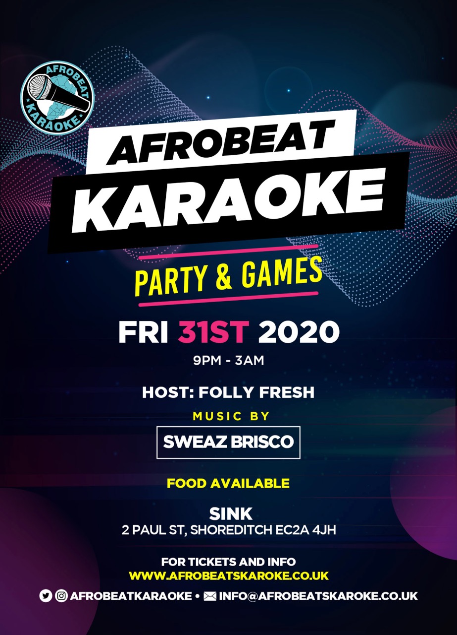 London's no.1 #Afrobeatkaraoke with something a little different once again 'Afrobeat karaoke party & Games'.