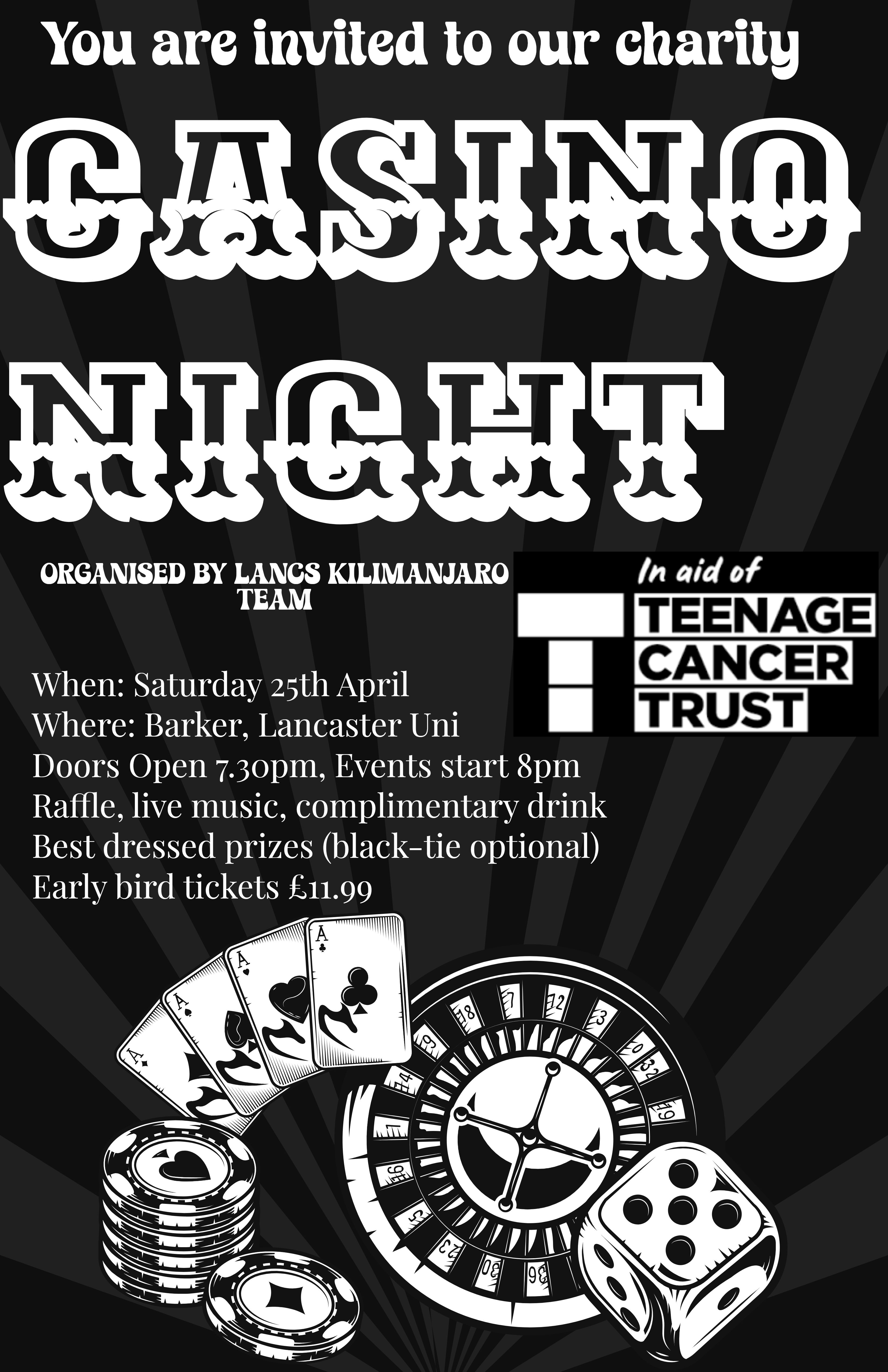 Do you want to help raise money for charity whilst having a great time? Calling all competitive souls and thrill seekers, welcome to the first Lancaster University casino night. A night filled with games, competition and live music. Get your tickets now.