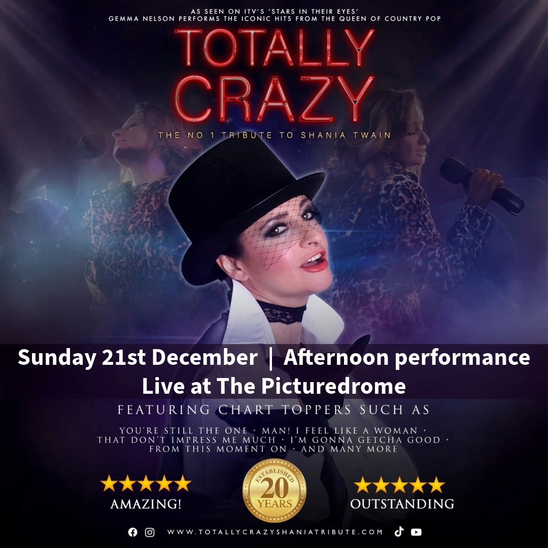 Fantastic Shania Twain Tribute Show 'Totally Crazy' performing all Shania's greatest hits and Some of our Country Favorites too, a good time to be had at The Picturedrome for this afternoon event giving you a great fun time this side of Christmas. Perfect for some time for yourself, time with friends or a work night out, see you on the dancefloor!
