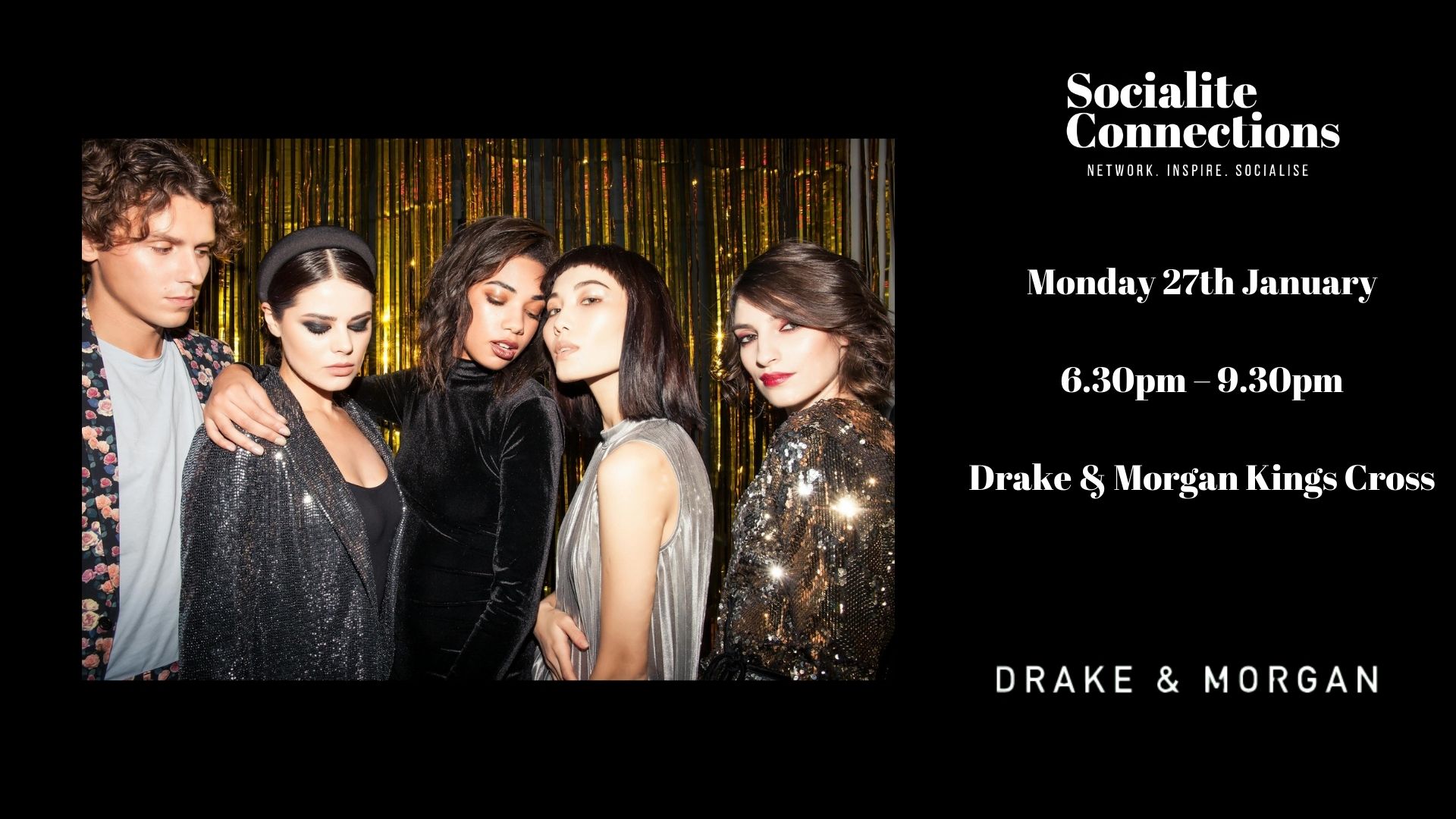 6.30pm - Arrival & Introductions (Ask for Socialite Connections) Your name will be checked off the guest list and you will be given a name badge and introduced to each other.