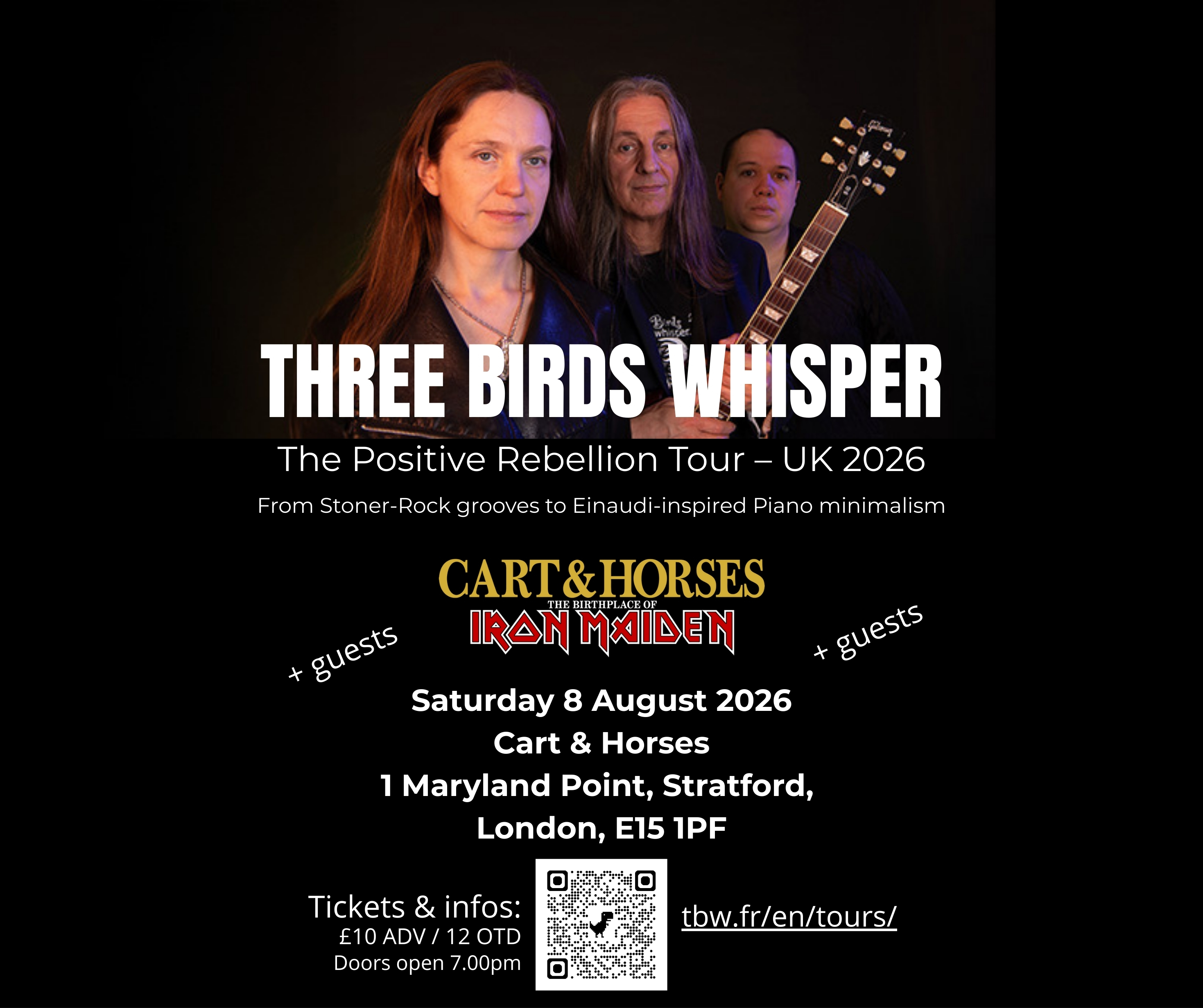 #ThreeBirdsWhisper #CartAndHorses #StratfordGigs #IronMaidenBirthplace #LiveMusicLondon #StonerRock #HeavyRock #UKTour2026 #PositiveRebellion