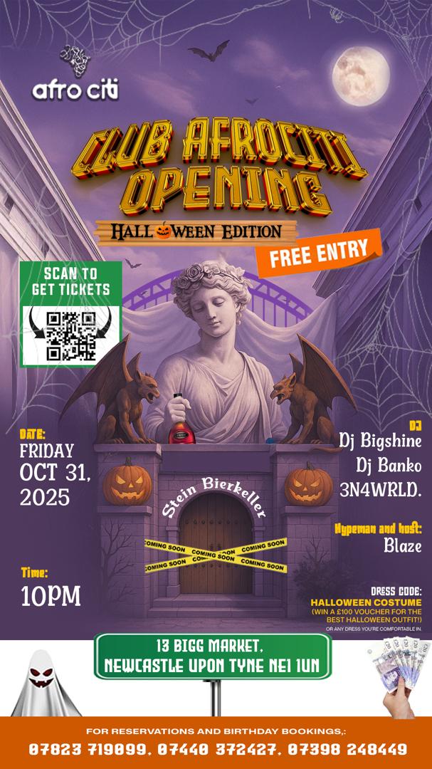 This is a FREE ENTRY event, but spaces are limited. Secure your spot now and prepare for an unforgettable Halloween night at Club Afrociti!