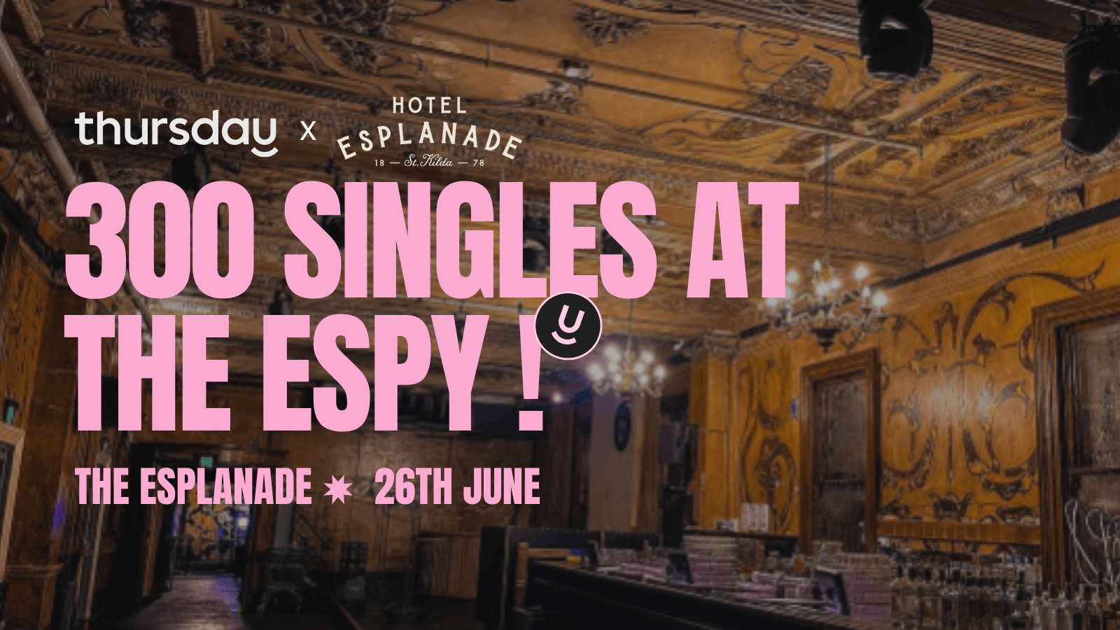 Weāre taking over The Espy ā Melbourneās most legendary beachside pub ā for a Thursday night thatās set to be big. Think: sunset views, multiple bars, buzzing rooms, and 300 singles who are actually keen to meet IRL.