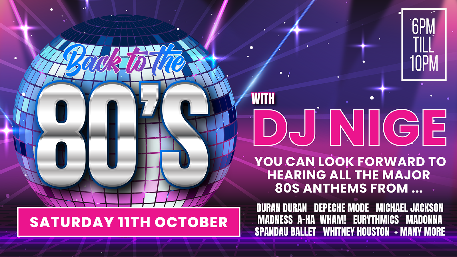 Get ready for unforgettable non-stop 80’s tunes, incredible vibes, and full-on nostalgia! Expect synth-pop anthems, rock classics, and pure feel-good energy.